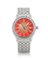 Cassa n. 28419905 in acciaio con oblò sul fondello a cerniera, lunetta graduata e girevole (buono). Quadrante bicolore rosso e argentato con numeri romani smaltati, divisione a 180 gradi, secondi e disco rotante al centro (originale, ottimo). Movimento a carica automatica (ottimo). Bracciale in acciaio. Quadrante, cassa, movimento e bracciale firmati. Completo di astuccio e certificato.