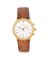 Cassa in oro giallo 18 kt con pulsanti tondi e vetro zaffiro (ottimo). Quadrante bianco con numeri romani applicati, contatore a 30 minuti e 12 ore, data al 6 (ottimo). Movimento a carica automatica (buono). Quadrante, cassa e movimento firmati. Completo di fibbia originale in oro giallo 18 kt.