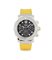 Cassa in acciaio con fondello, corona e pulsanti a vite, lunetta graduata e girevole, vetro zaffiro (come nuovo). Quadrante nero inciso con indici, numeri arabi e lancette luminescenti, contatore a 30 minuti e 12 ore, data tra il 4/5 (come nuovo). Movimento a carica automatica (ottimo). Quadrante, cassa e movimento firmati. Completo di cinturino in caucciù giallo e fibbia deployante in acciaio, astuccio e certificato in bianco, certificato C.O.S.C.