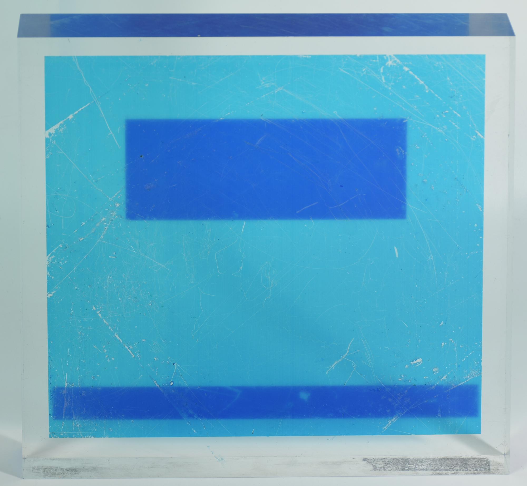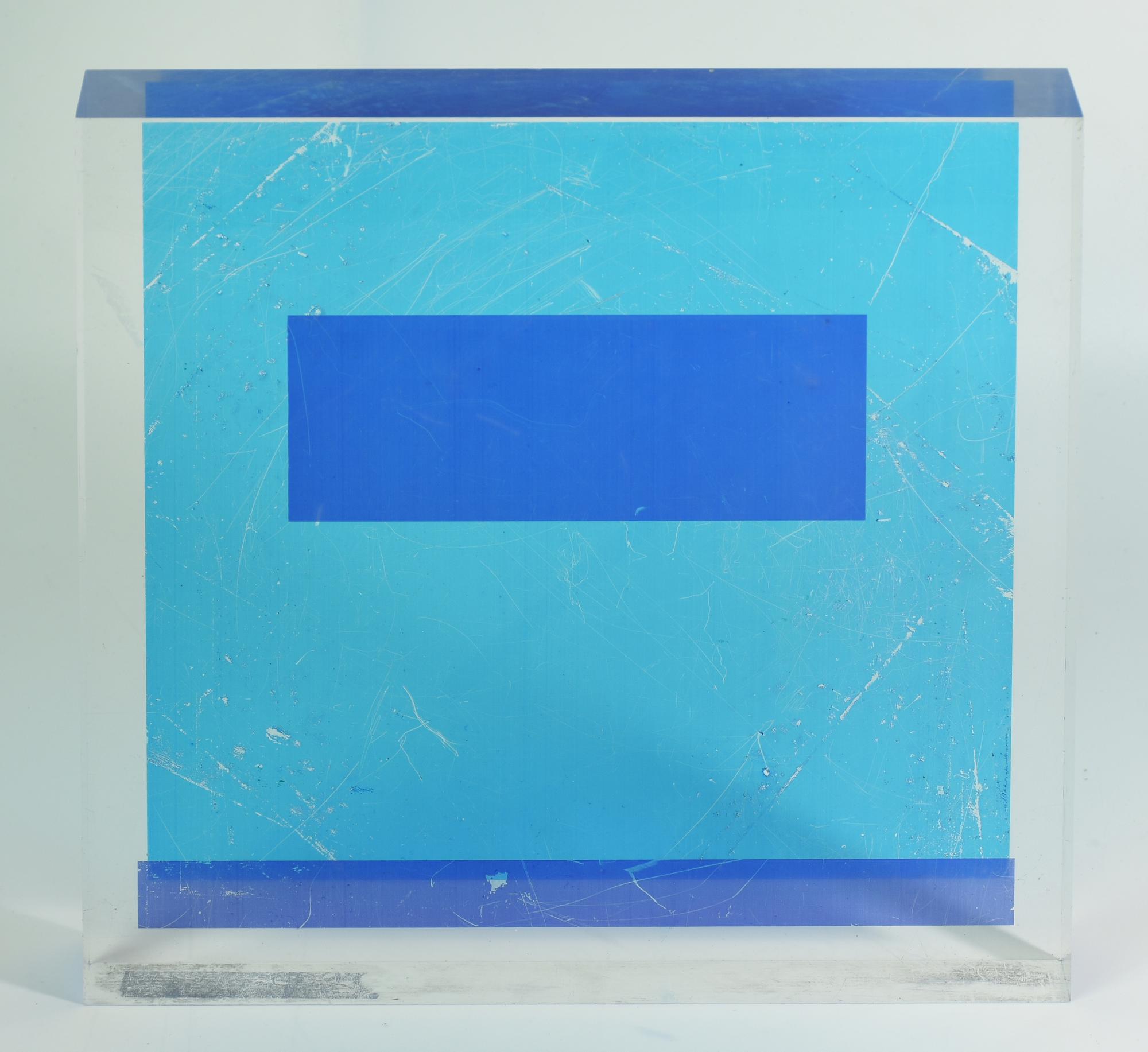 scultura in plexiglass con applicazioni, cm 26x26x3