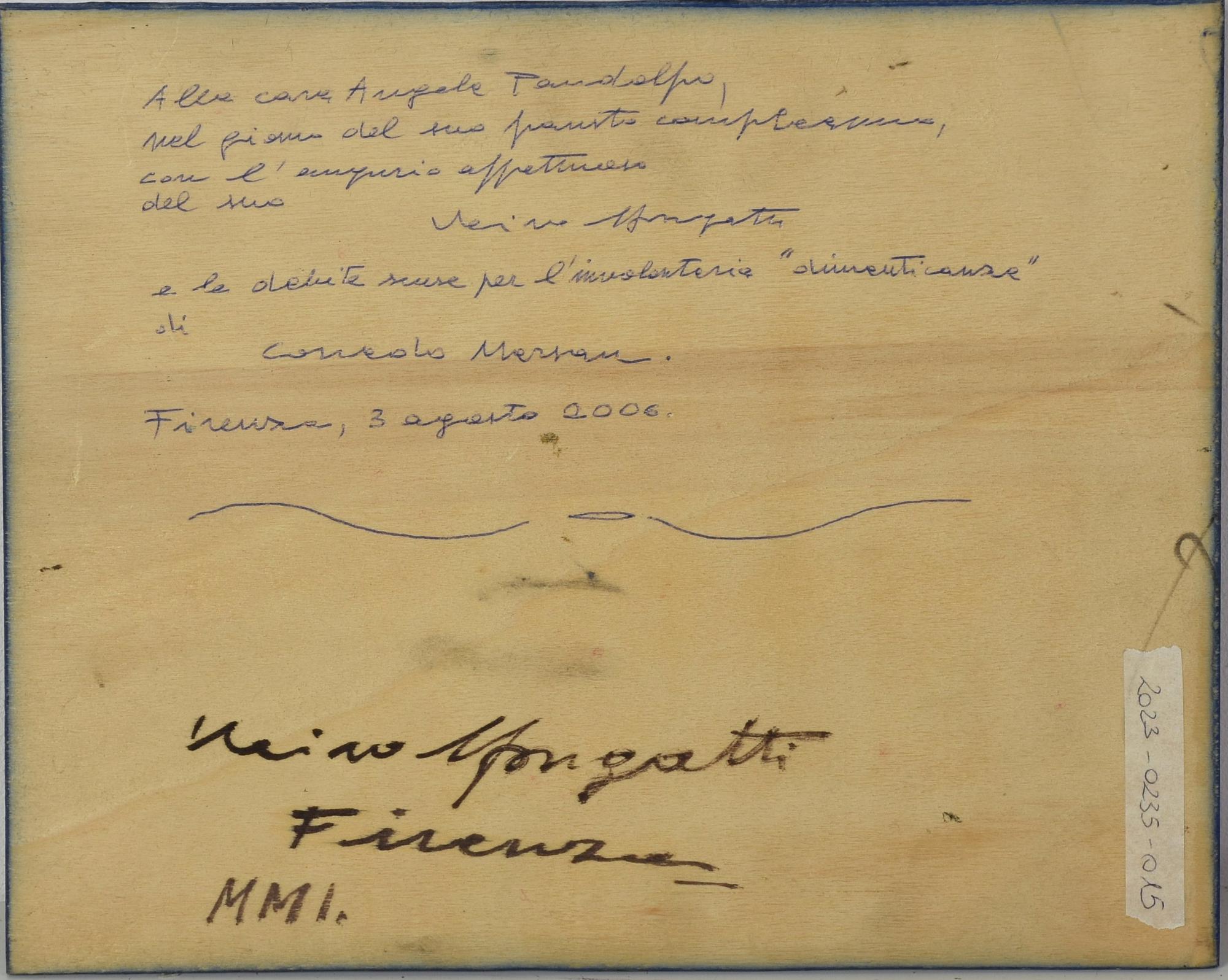 Vairo Mongatti MELOGRANI olio su tavola, cm 25x30 firma sul retro: firma e...