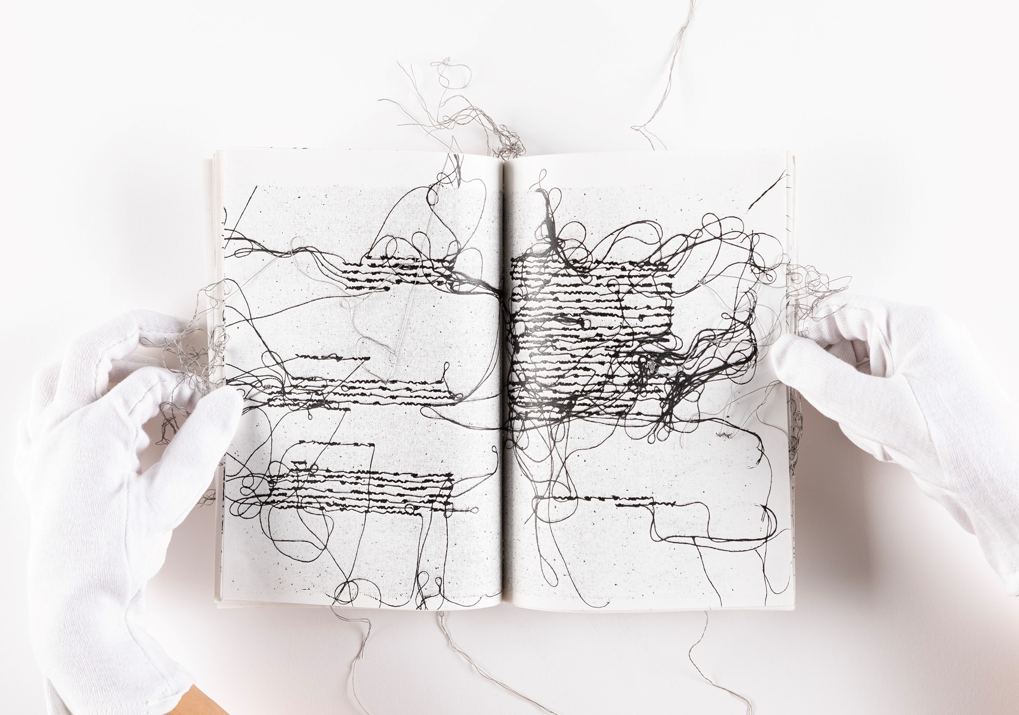 libro ricamato, xerocopie su carta e filo grigio, es. 2/30