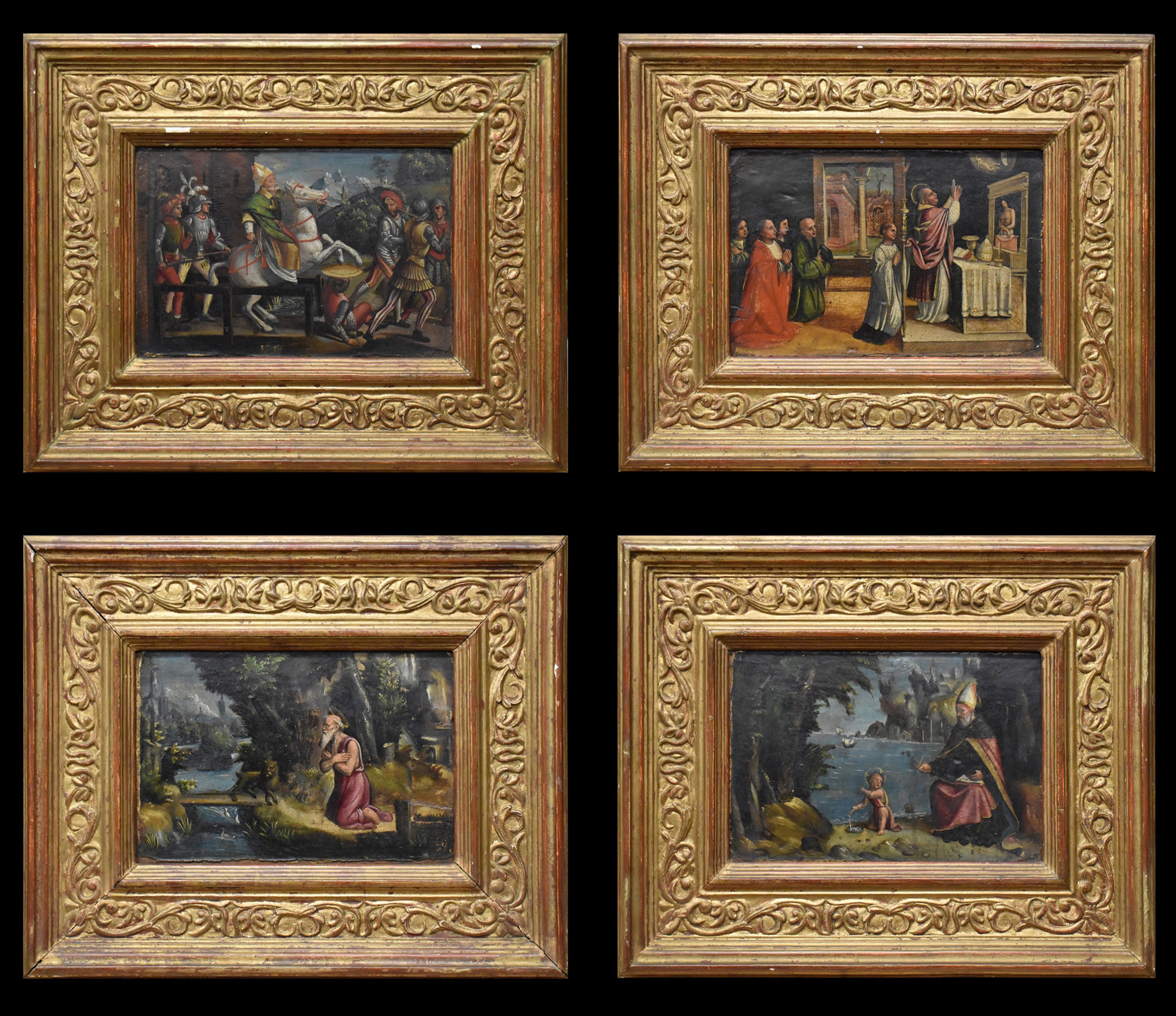 N.4 olii su tavola 'Conversione di San Paolo' 'Messa di San Nicola da Tolentino' 'San Girolamo e il leone' 'Sant'Agostino sulla riva con Gesù Bambino che svuota il mare con un cucchiaio' sec. XVI