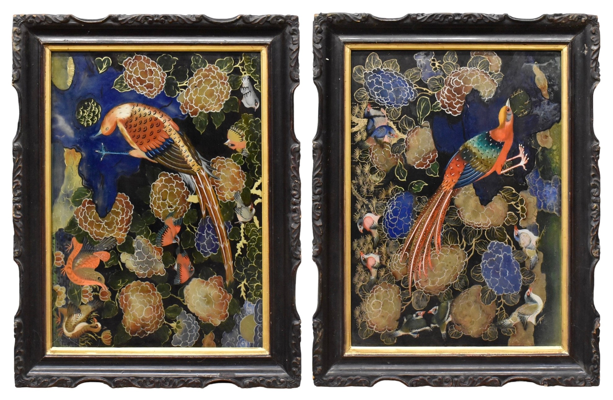 Coppia di dipinti su vetro raffiguranti volatili scuola piemontese sec.XVIII