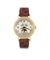 Cassa n. 1579438 in oro giallo 18 kt con anse a goccia (ottimo). Quadrante argentato a due toni con indici e numeri arabi applicati, secondi e fasi luna al 6, finestrelle per giorno e mese al 12, data periferica (originale, ottimo). Movimento a carica manuale (ottimo). Quadrante, cassa e movimento firmati. Completo di fibbia in oro giallo 18 kt originale.