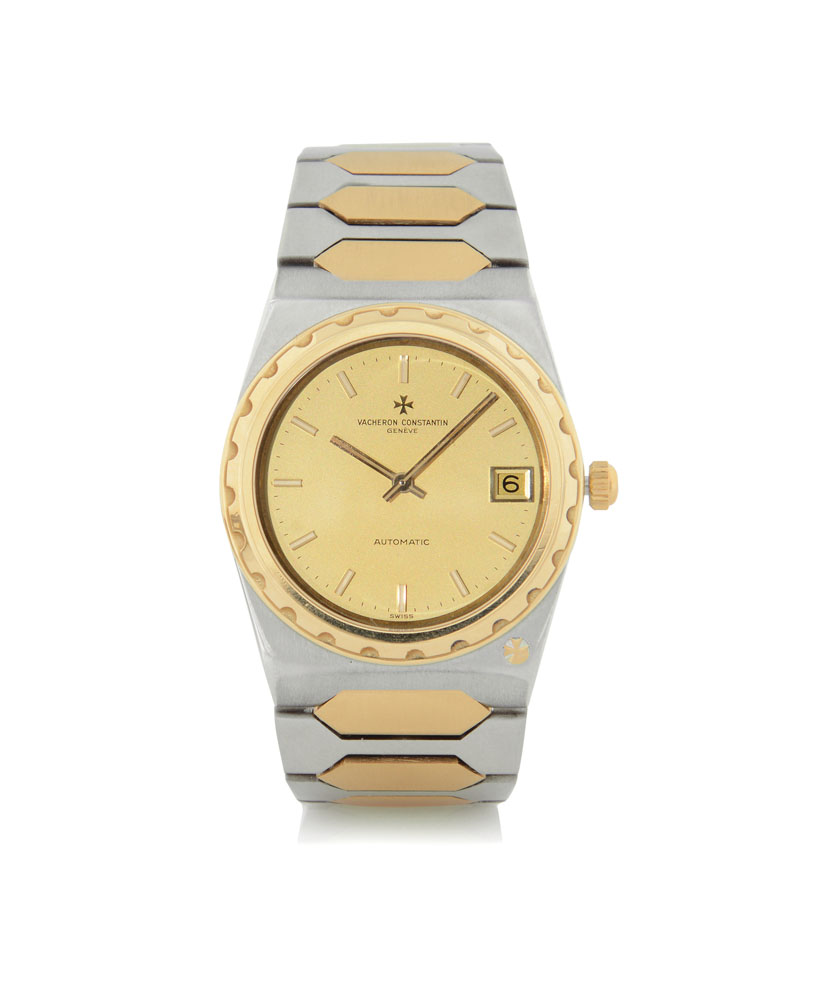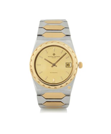Cassa n. 549143 tonneau in acciaio e oro giallo 18 kt con lunetta dentellata e vetro zaffiro (ottimo). Quadrante champagne con indici applicati e data al 3 (originale, ottimo). Movimento n. 719651 a carica automatica con segmento del rotore in oro (buono). Bracciale in acciaio e oro giallo 18 kt. Quadrante, cassa, movimento e bracciale firmati.