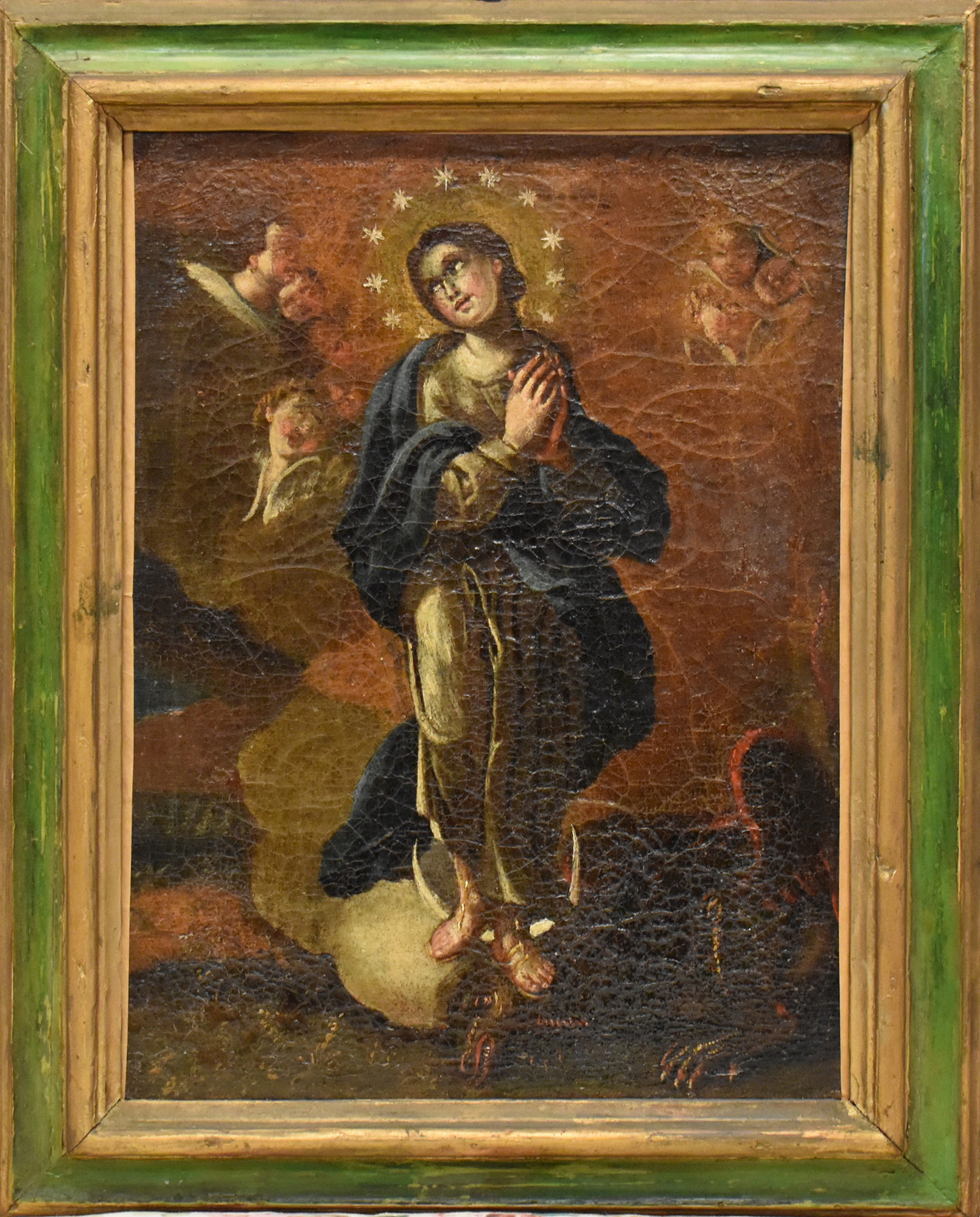 Precedente Lotto 0301 Successivo Casa d'Aste Martini - C.so Cavallotti 76, 18038 Sanremo ASTA ANTIQUARIATO, DIPINTI, ARTE MODERNA, ARTE ORIENTALE Sessione unica giovedì 14 dicembre 2023 ore 15:00 (UTC +01:00) DIPINTO 'Immacolata concezione' olio su tela sec.XVIII cm. 44x33