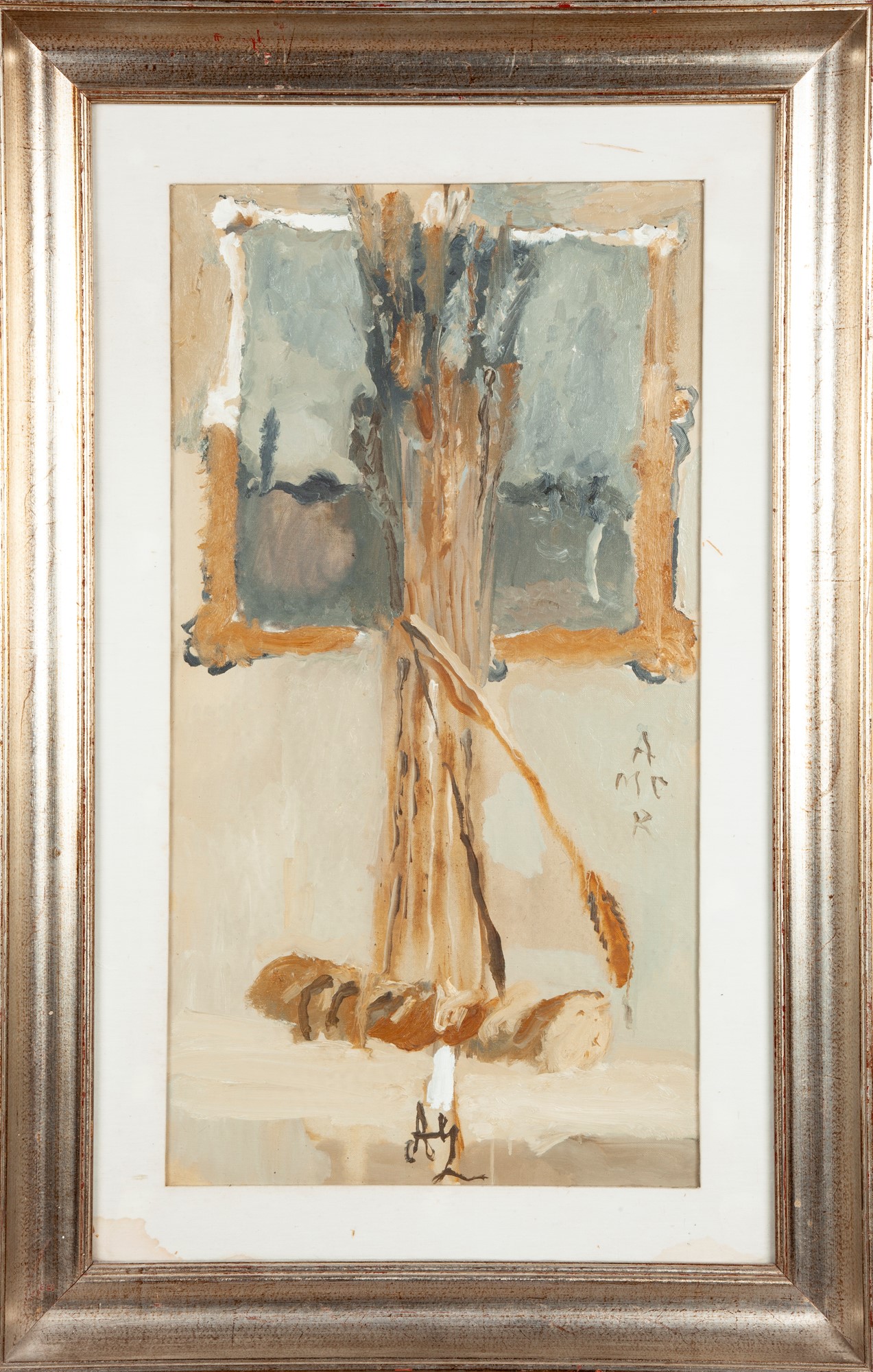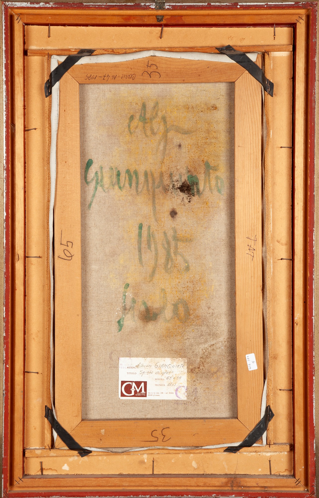 Spighe di grano 1985 Olio su tela cm 65x35 - in cornice cm 85x55 Monogramma sul fronte "AG". Al verso reca firma, anno "Alg Gianquinto 1985". Etichetta della Galleria Margutta di Pescara