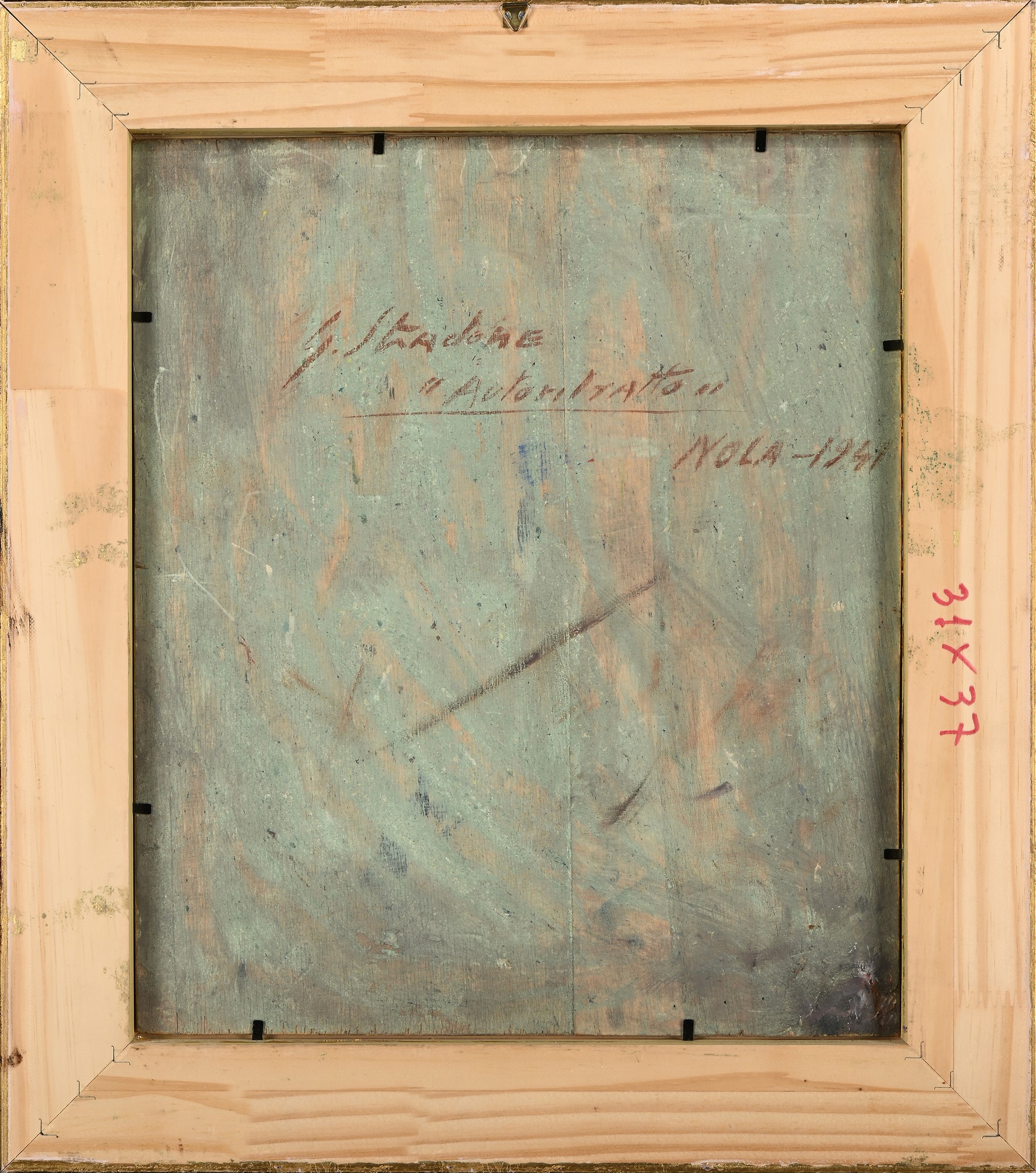 Autoritratto 1941 Olio su tavola cm 37x32 - in cornice cm 48x43 Firma, titolo e data al verso "G. Stradone, Autoritratto, Nola - 1941".