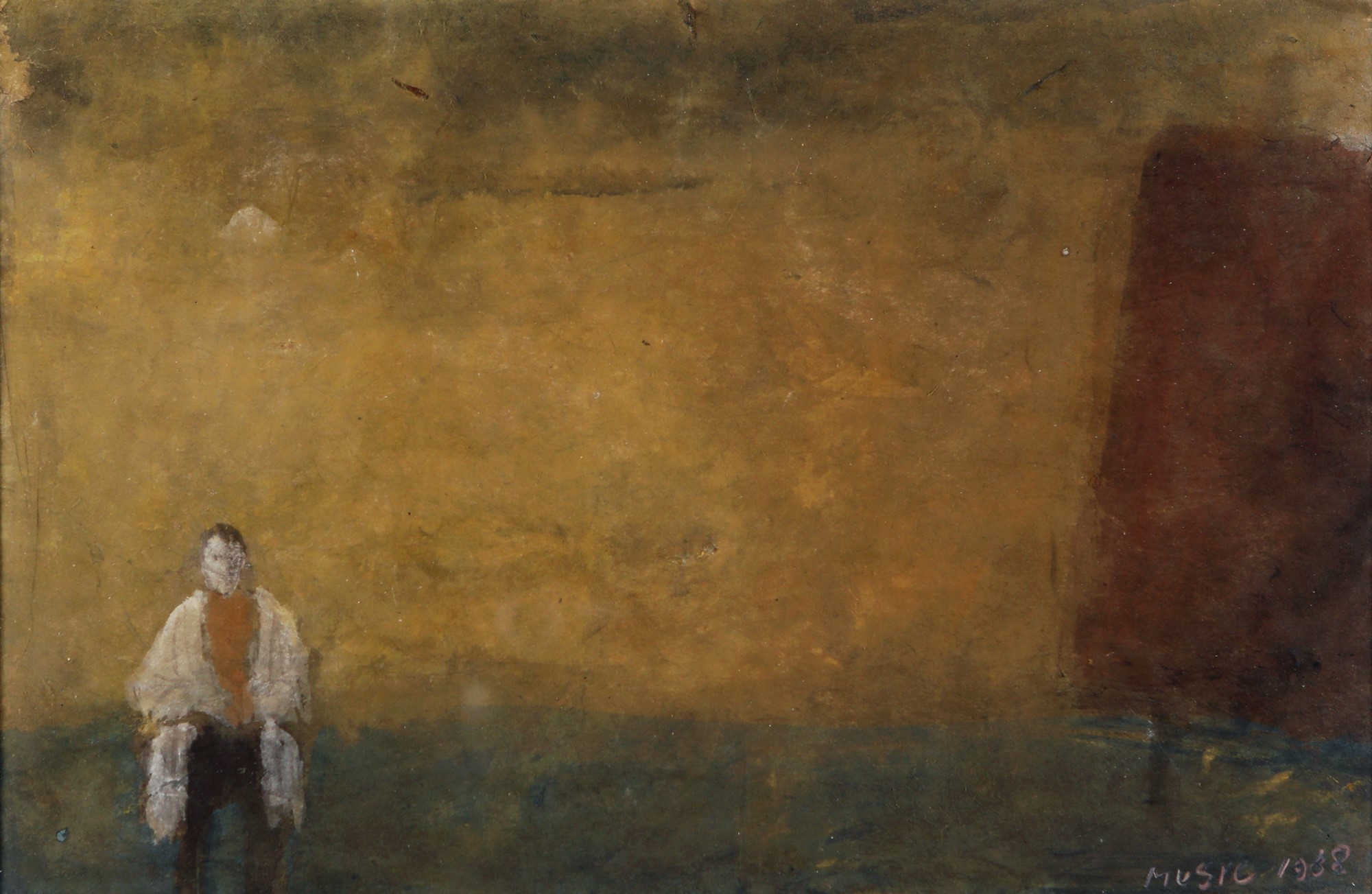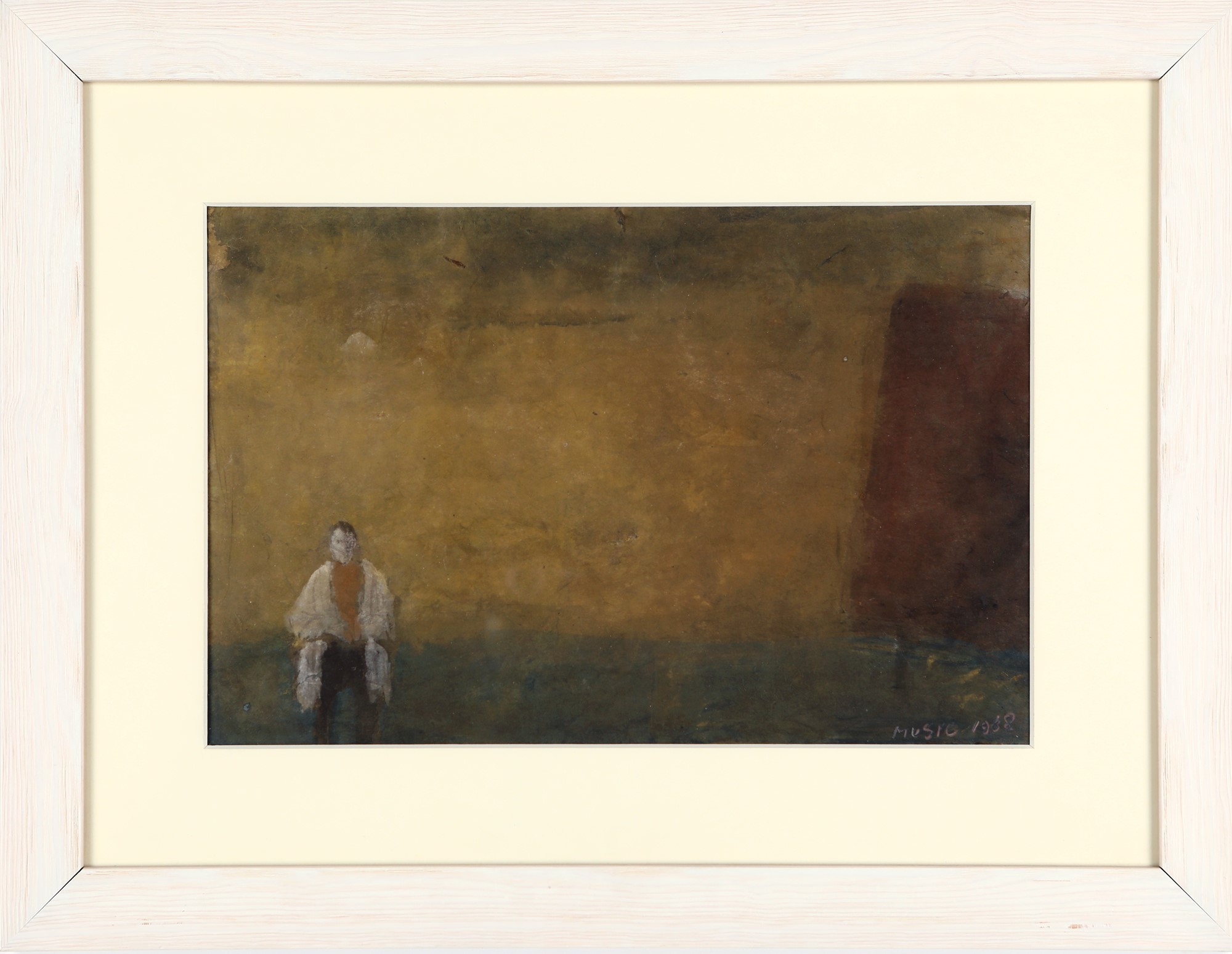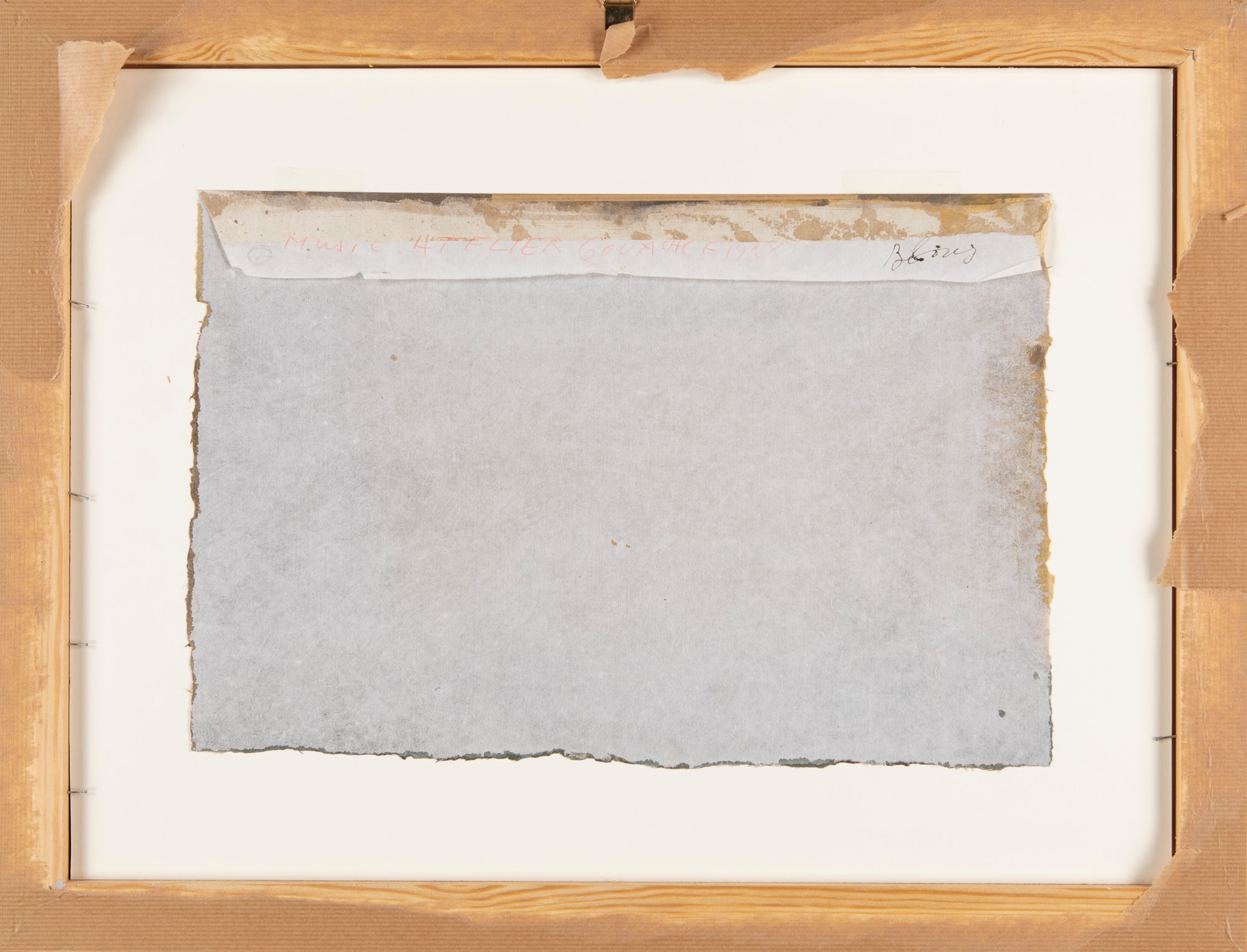 Atelier 1988 Gouache su carta cm 28x43,5 - in cornice cm 48x62 Firma e data in basso a destra "Music 1988". Al verso titolo, data e firma Certificato di autenticità su fotografia rilasciato e firmato di pugno da Ida Cadorin Music