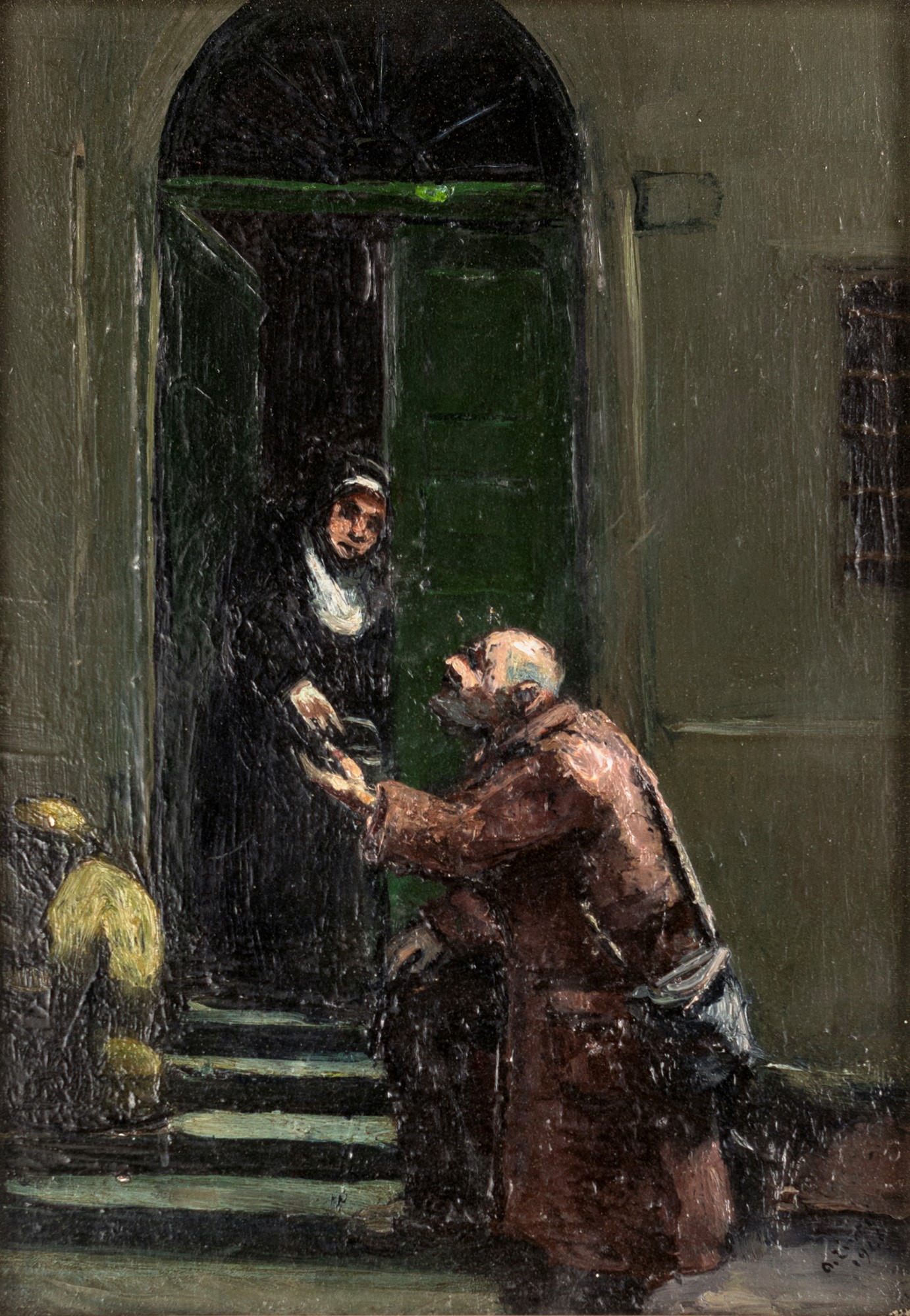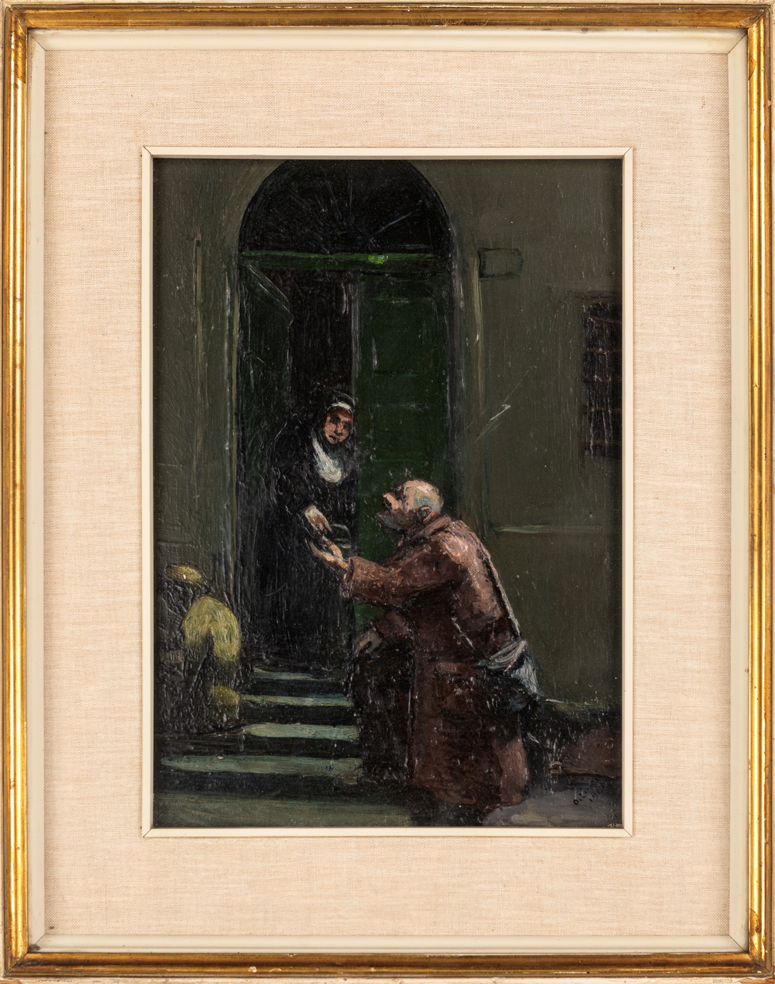 Alberto Ziveri (Roma 1908-Roma 1990) L'obolo 1946 Olio su tavola cm 35x25 -...