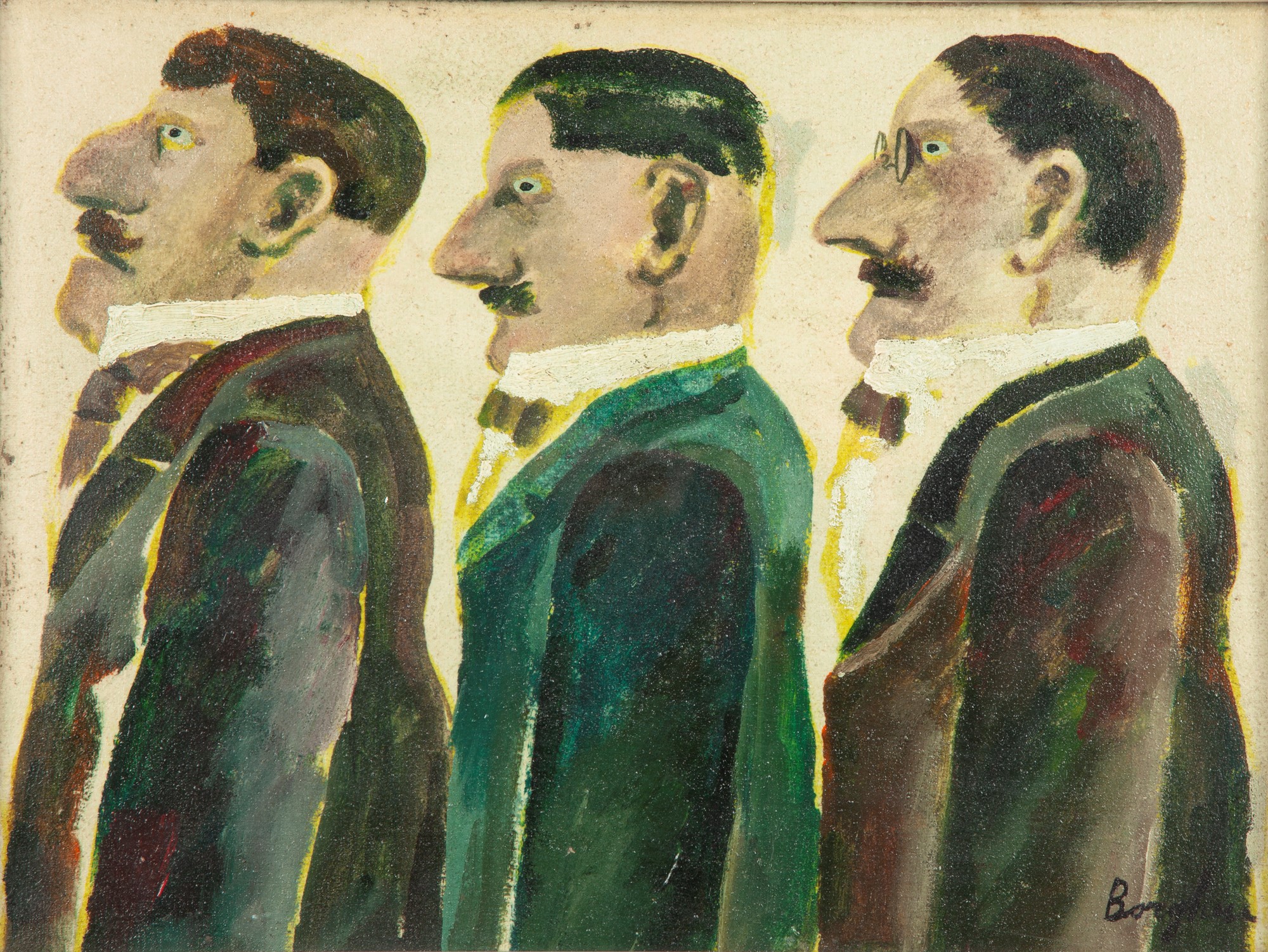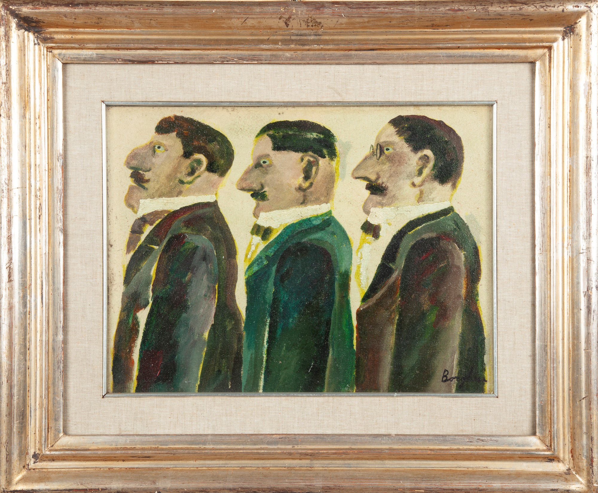 Personaggi Olio su tela cm 30x40 - in cornice cm 49,5x59,5 Firma in basso a destra "Borghese". Al verso reca etichetta della Galleria Margutta Pescara. Firma Franz Borghese
