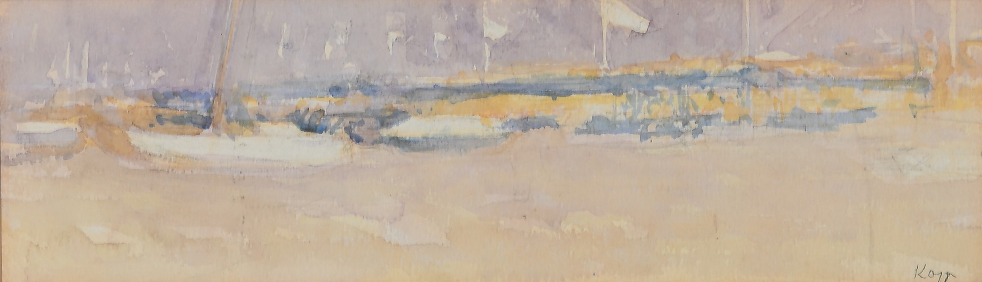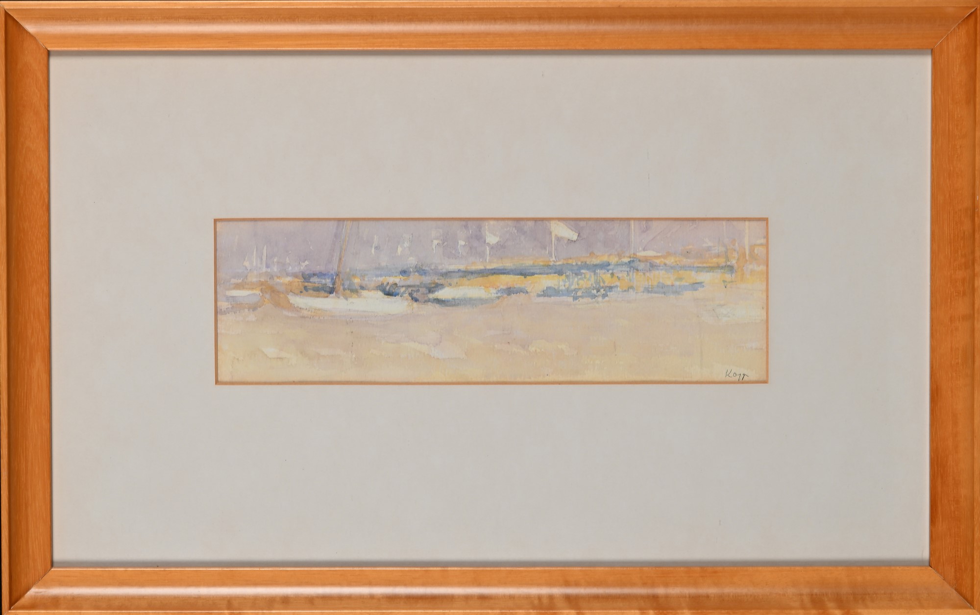 Spiaggia con barche Acquarello e matita su carta cm 9x29 - in cornice cm 32x51,5 Firma in basso a destra "Kopp".