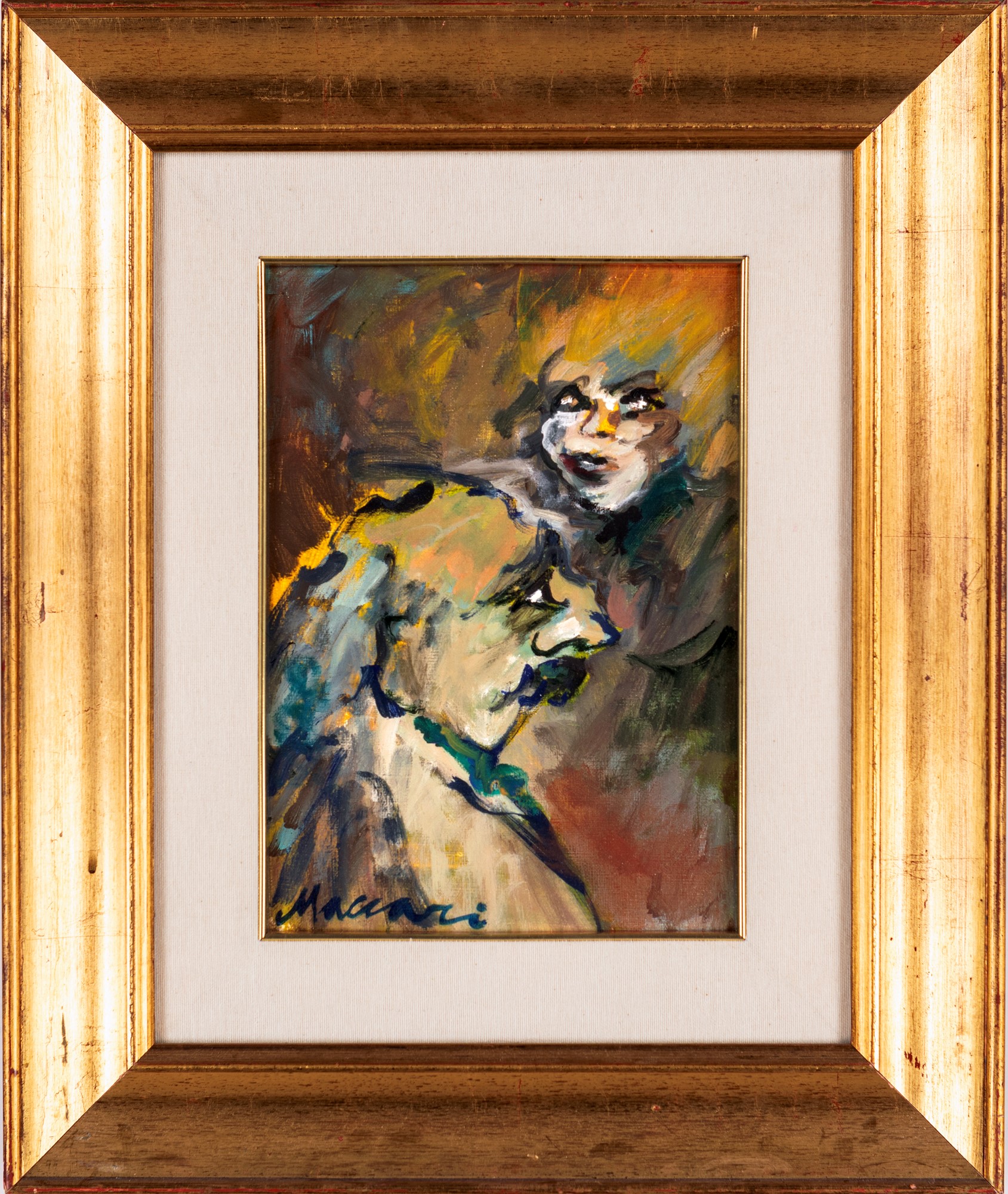 Mino Maccari (Siena 1898-Roma 1989) Figure olio su tela 33x24 cm in cornice...