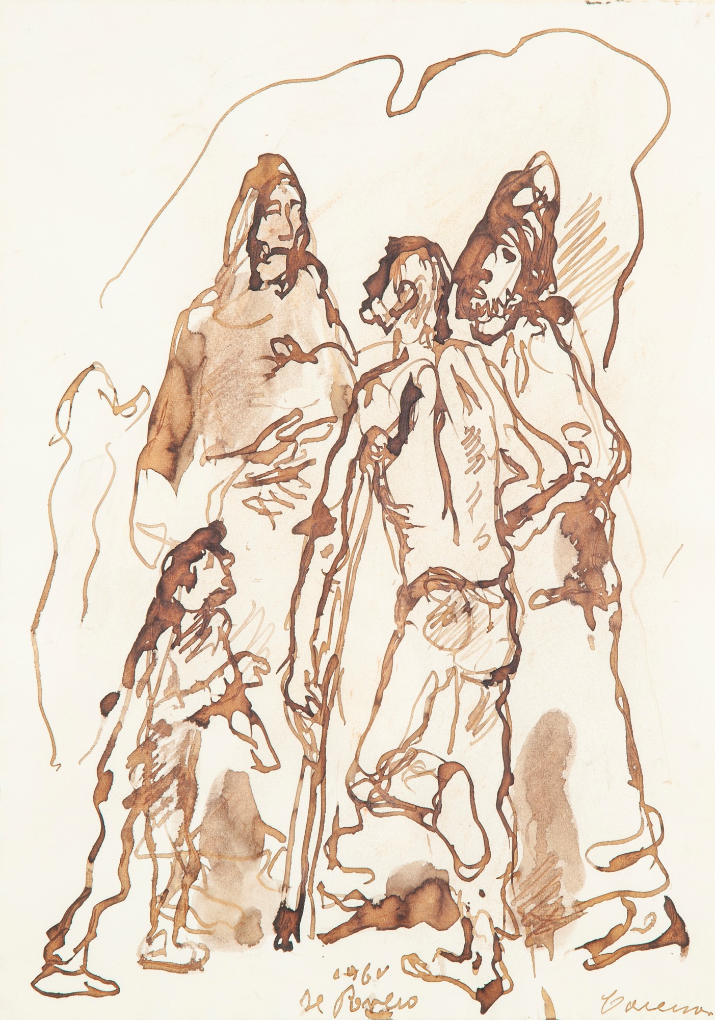 Felice Carena (Cumiana 1879-Venezia 1966) Il povero 1960 china su carta cm...