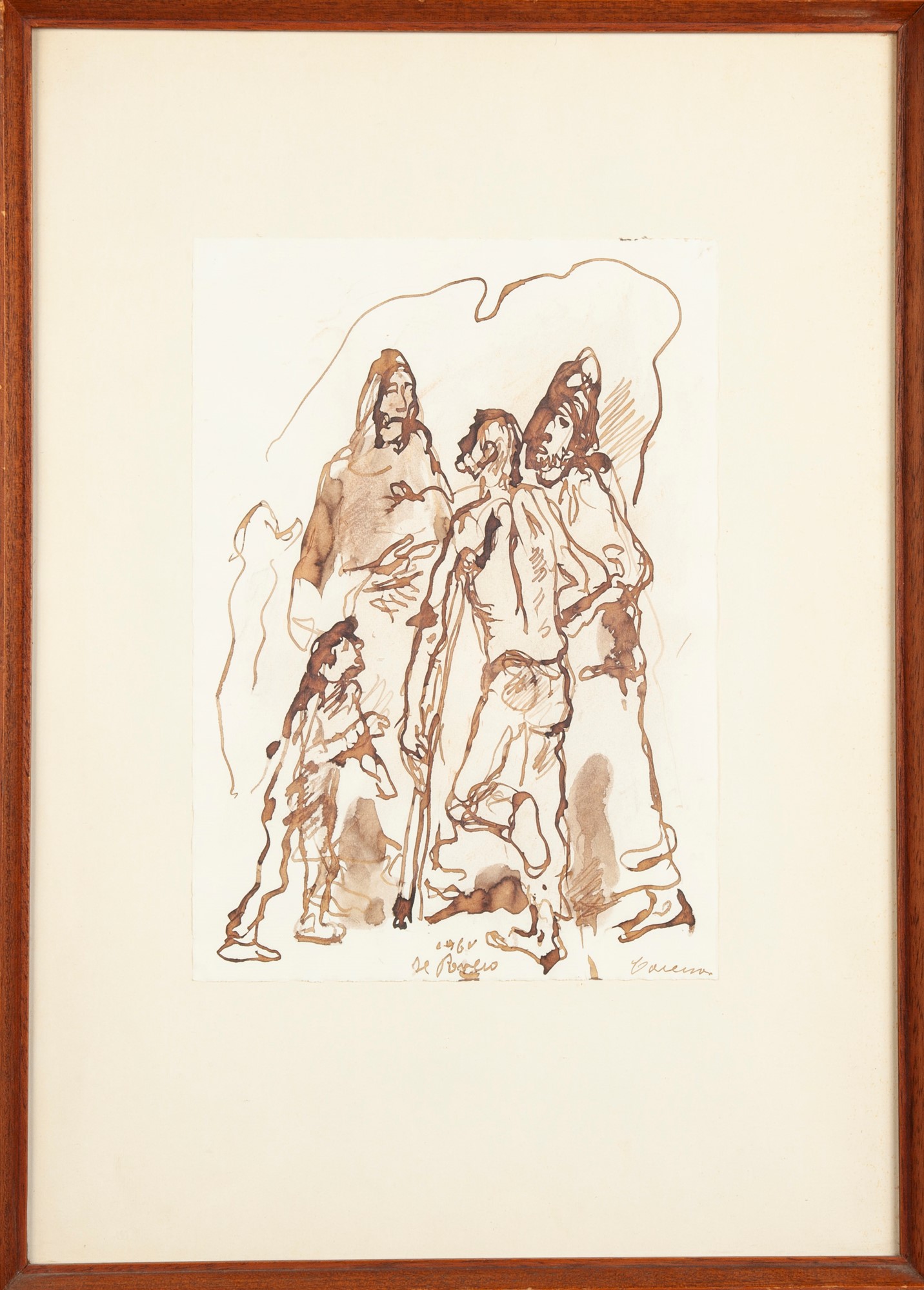 Il povero 1960 china su carta cm 30x21 - in cornice cm 51x37 Firma data e titolo "Carena 1960, Il povero"
