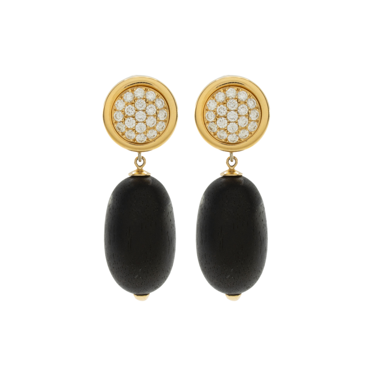 Orecchini in oro rosa 18kt firmati WZP peso 22 gr. diamanti taglio brillante ct 1,60 circa e pendente in ebano, lunghezza 4,8 cm.