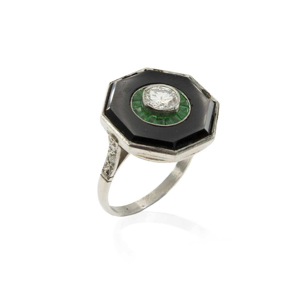 Lotto 108 | Anello Decò in platino e diamante peso 9 gr.