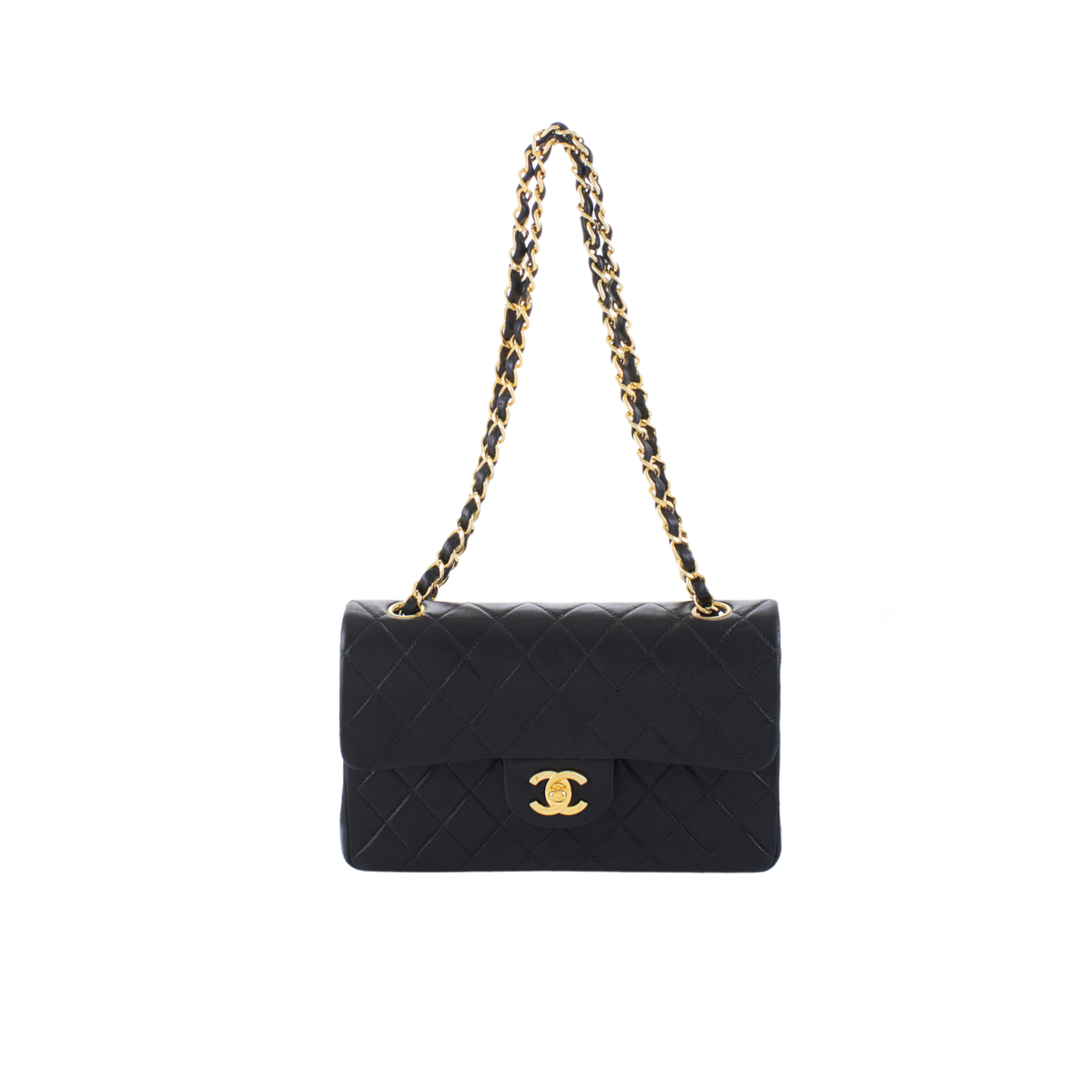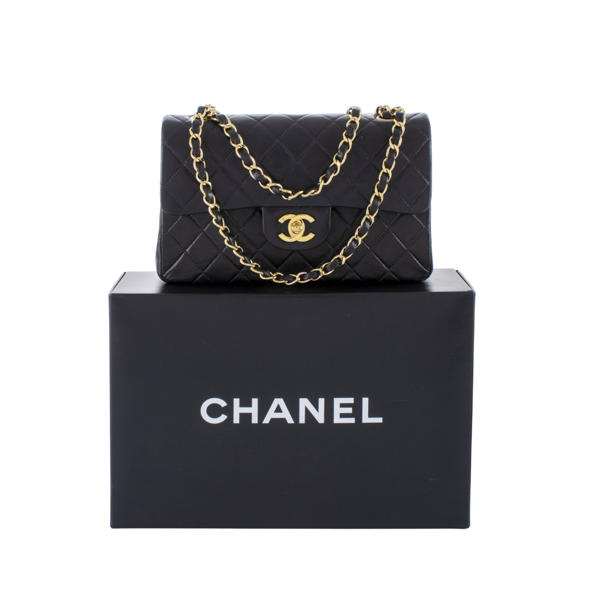 Chanel Timeless Classique borsa a spalla vintage anno 2000/2002 misure 23x15x6 cm. in pelle nera, finiture dorate, interno in pelle bordeaux ad uno scomparto con due tasche, una tasca esterna chiusura a patta con logo, doppia tracolla a catena e pelle, completa di dust bag e scatola