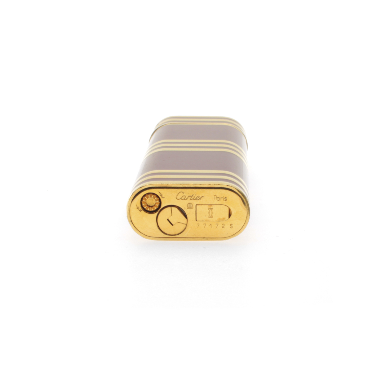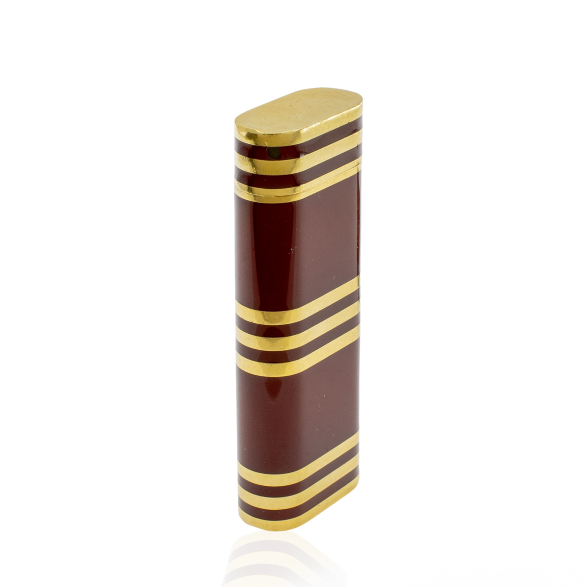 Cartier, accendino vintage firmato e numerato peso 71 gr. placcato in oro giallo e lacca bordeaux, dimensioni 7x2,5x1 cm.