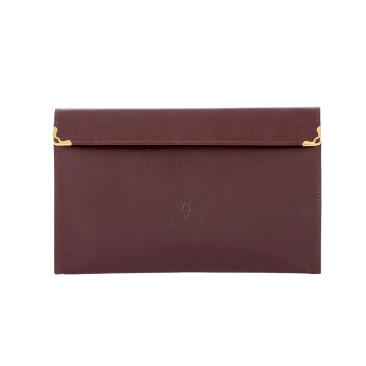 Must de Cartier pochette vintage anni 90 misure 20x13x6 cm. in pelle bordeaux, interno in tela ad uno scomparto, chiusura a pressione, completa di scatola e garanzia