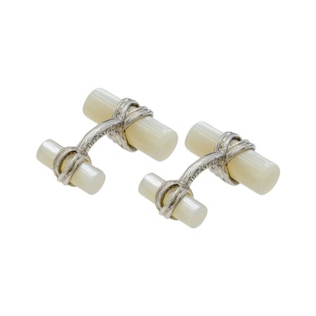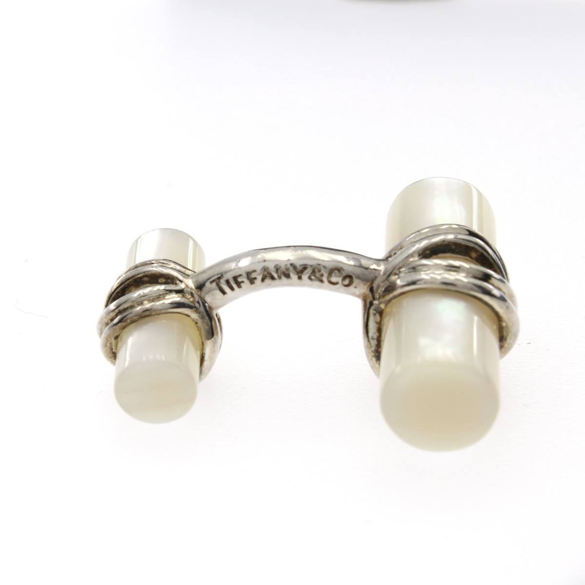 Tiffany & Co. gemelli vintage firmati peso 11 gr. in argento 925 e sezioni cilindriche in madreperla completi di custodia in tessuto e scatola