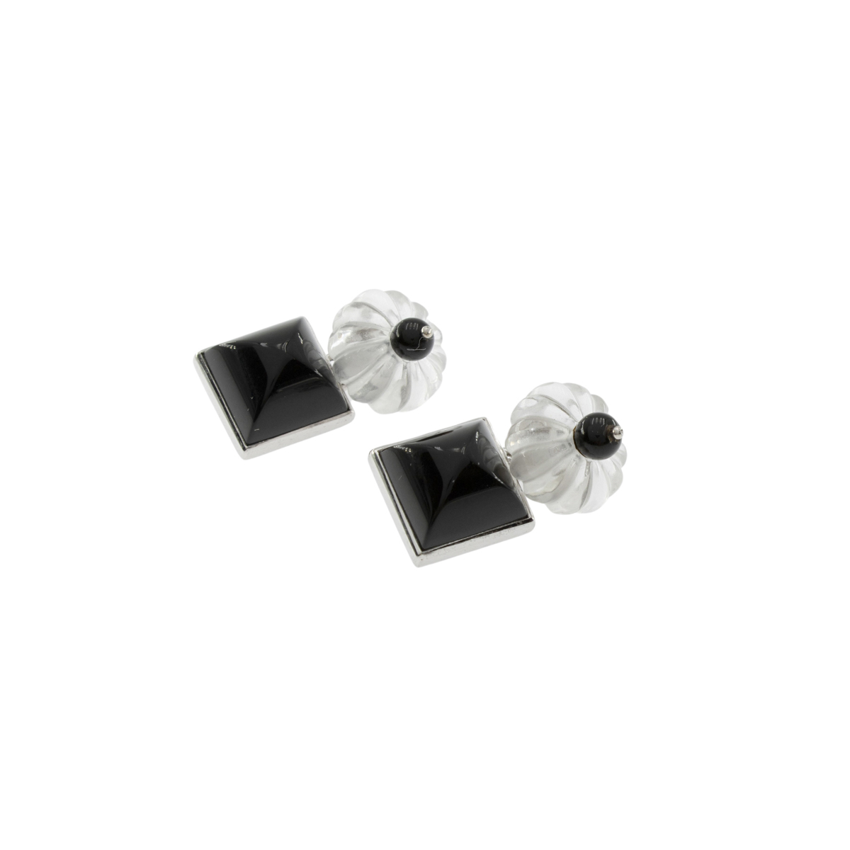 Gemelli in oro bianco 14kt peso 11 gr. onice nero e cristallo di rocca