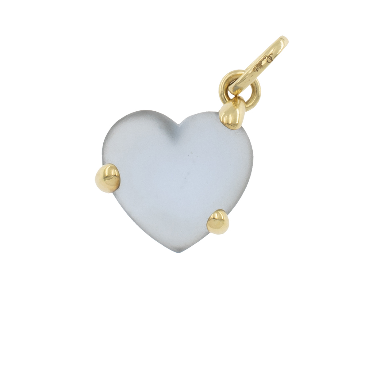 Pomellato pendente cuore firmato peso 23 gr. in oro giallo 18kt e pasta vitrea, dimensioni 3x2,5 cm.