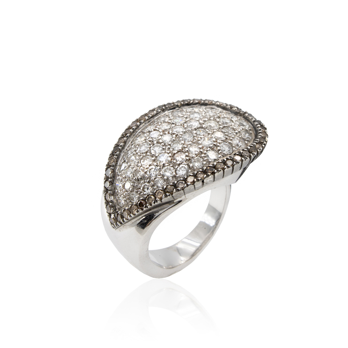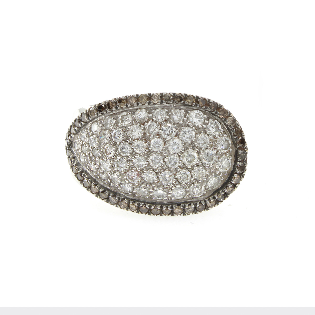 Anello in oro bianco 18kt e diamanti peso 14 gr. taglio brillante ct 1,20 circa e diamanti neri, misura 9