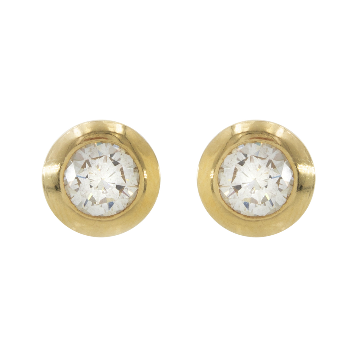 Orecchini a lobo in oro giallo 18kt con due diamanti peso 3 gr.