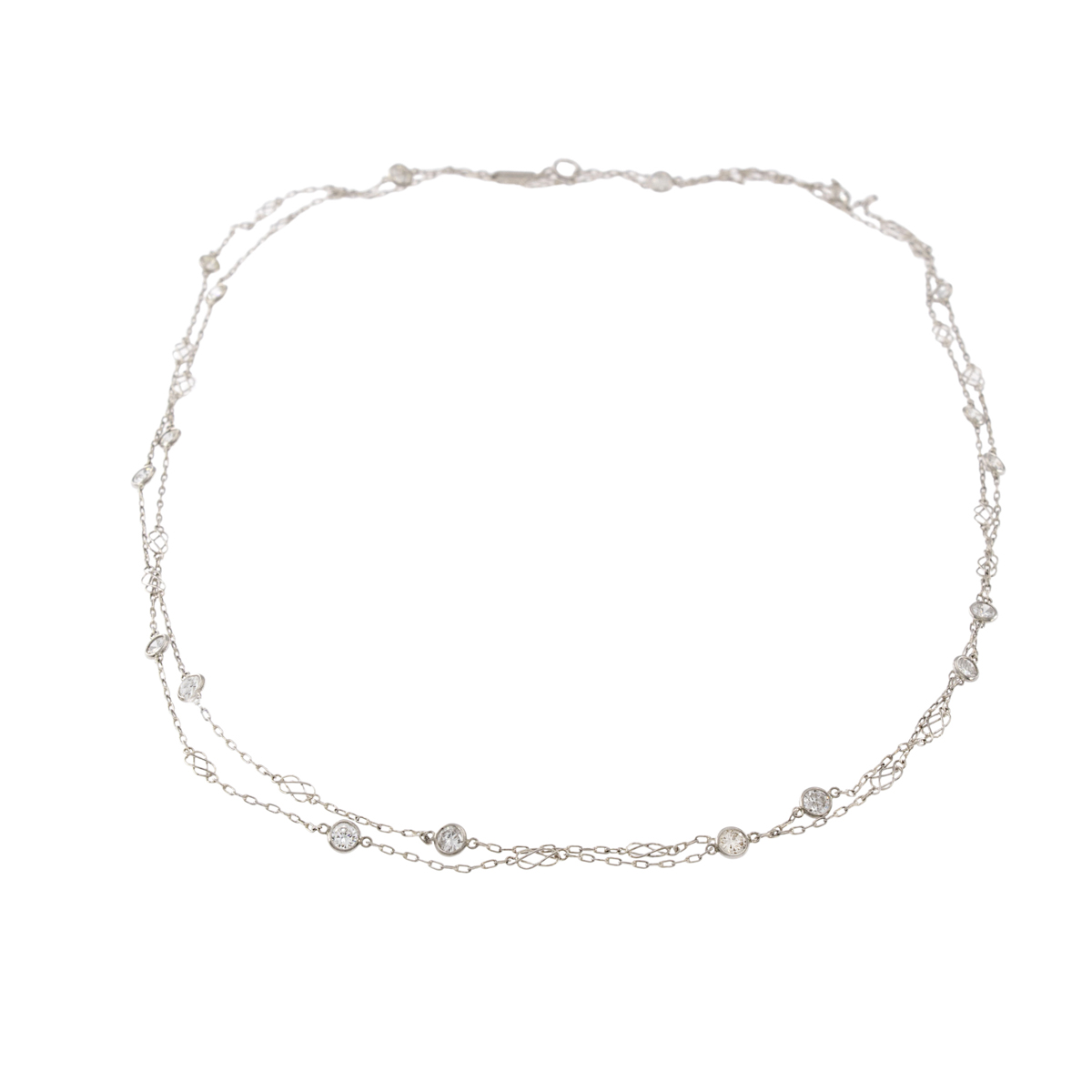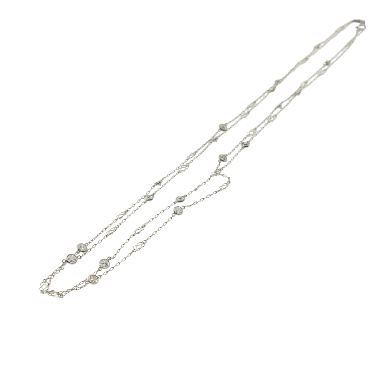 Collana in oro bianco 18kt e diamanti anni 40/50 peso 7 gr. taglio brillante ct 2 circa, lunghezza 100 cm.