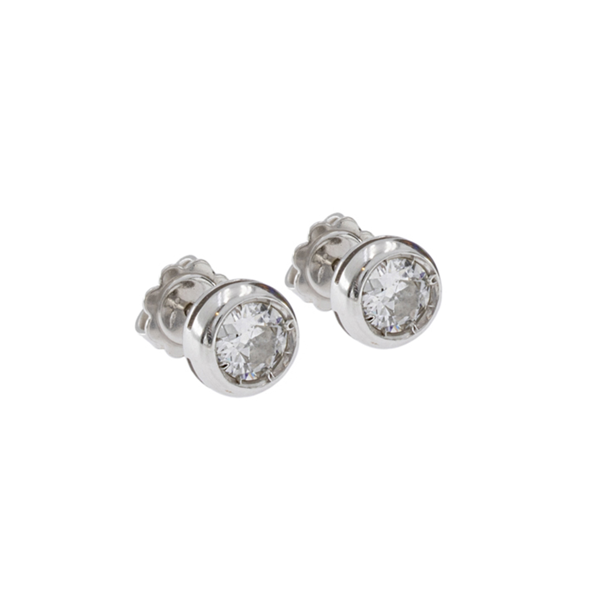 Orecchini a lobo in oro bianco 18kt con due diamanti peso 4 gr. taglio brillante vecchio ct 1 circa