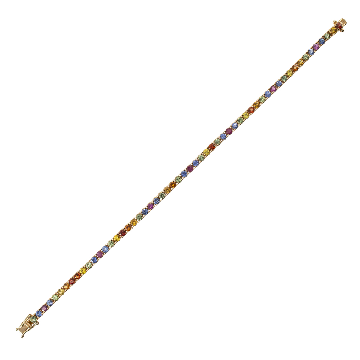 Bracciale tennis in oro rosa 18kt e zaffiri multicolor peso 11 gr. taglio brillante, lunghezza 20 cm.