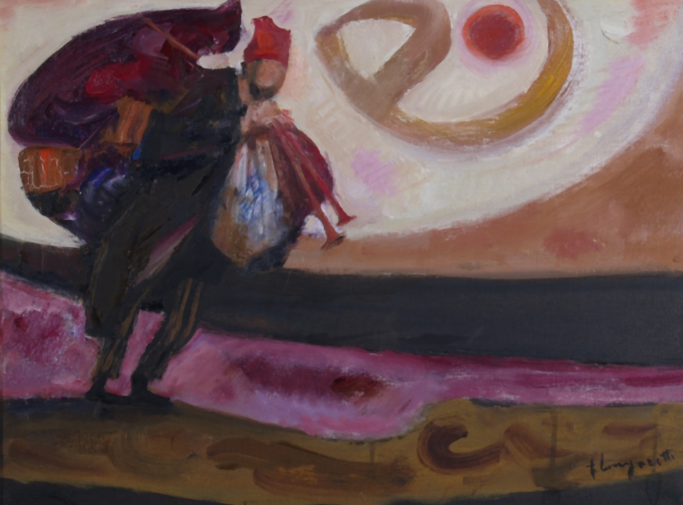 LONGARETTI TRENTO (Treviglio 1916) "Il pifferaio" Olio su tela cm. H: 30.00...