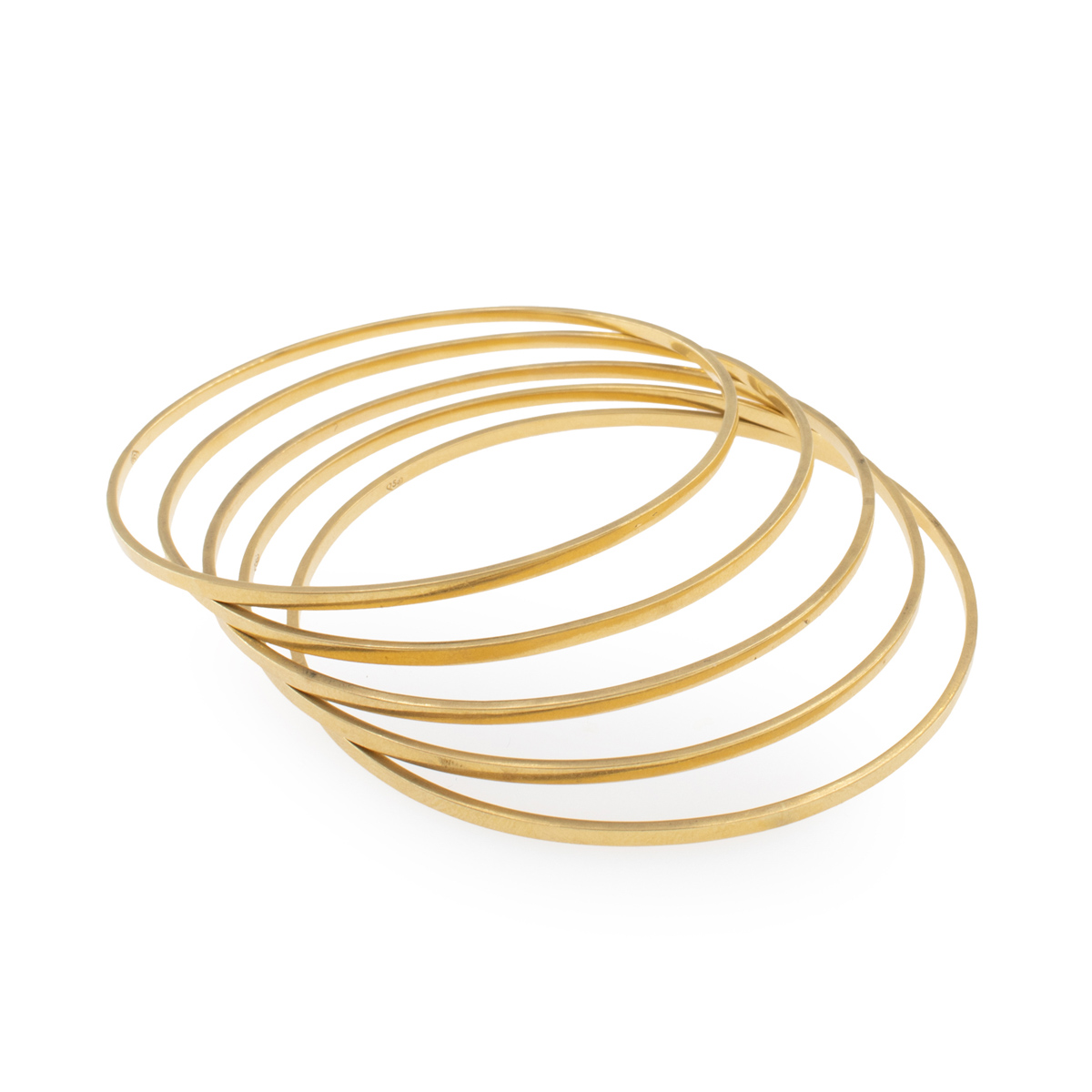 Cinque bracciali a manetta in oro giallo 18kt peso 33 gr. diametro 6 cm.