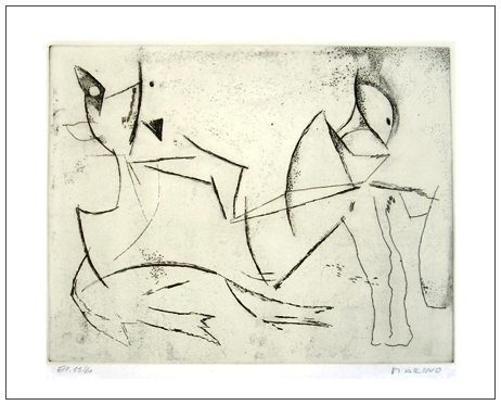 MARINO MARINI Pistoia 1901 – Viareggio 1980 Guerriero 1971 Acquaforte es.53/60. Firma in b. a d.; in b. a s. timbro a secco Luigi De Tullio Stampatore. (37,7 x 50,5 foglio – 31,8 x 41,6 inc.) Tiratura: 130 es. num. arabi su carta Velin d’Arches + XXX es. num. romani su carta Magnani. Pubbl. : “Marino Marini Catalogo ragionato dell’Opera grafica (Incisioni e Litografie) 1919-1980” a cura di Giorgio e Guido Guastalla, Edizioni Graphis Arte, Livorno, 1990, p.214, A 129.