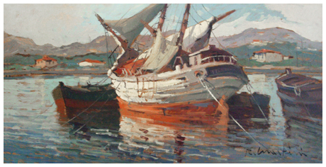 RENZO MARTINI Livorno 1937 – 2005 Senza titolo Olio su tavola 30 x 60. Firma in b. a d. e sul verso.