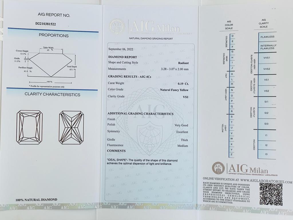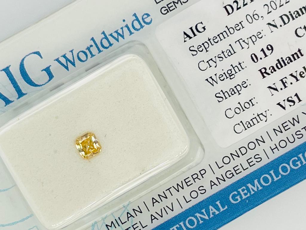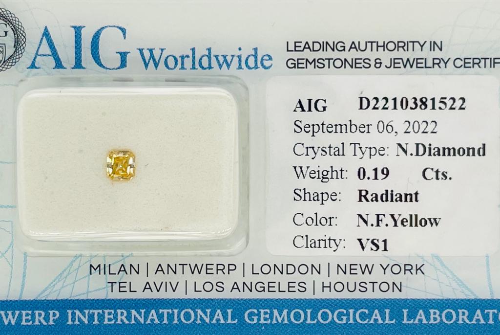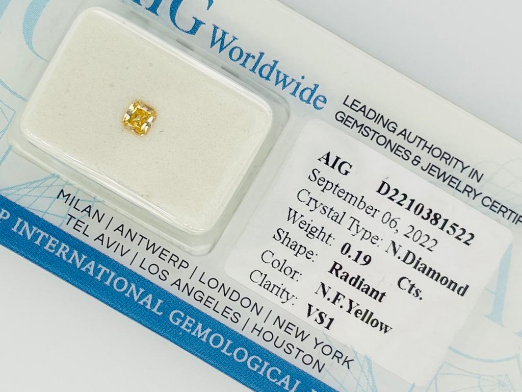 DIAMANTE NATURAL POLISHED 0,19 CARATI COLORE FANCY GIALLO - PUREZZA VS1 - TAGLIO RADIANTE - CERTIFICATO AIG - F20901-21