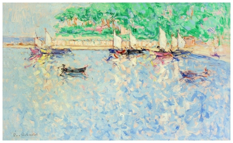 PIERO PASTACALDI Livorno 1945 Le vele, Castiglioncello Olio su cartone 25 x...