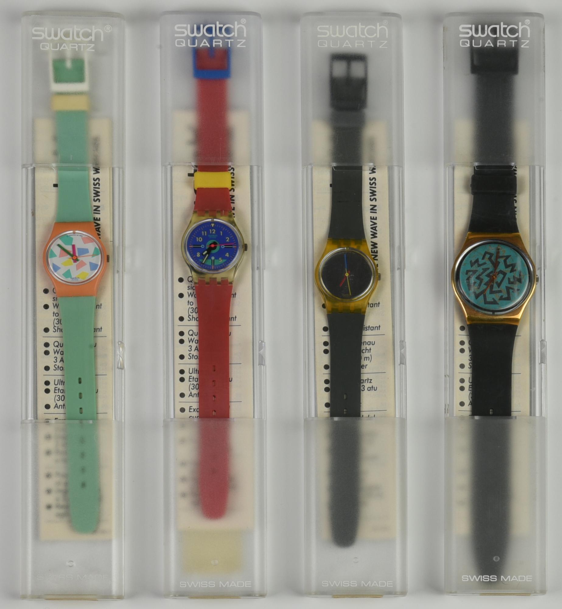 LOTTO DI QUATTRO SWATCH, 1988 composto da: -SWATCH LOLLYPOP, mod. BLUE LOLLY,...