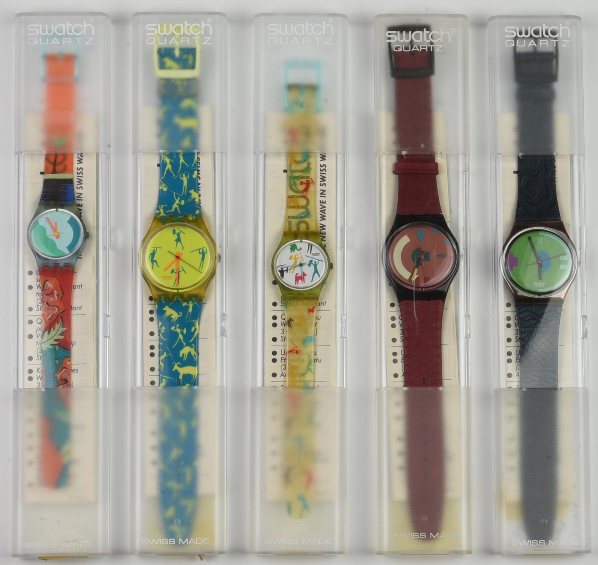 LOTTO DI CINQUE SWATCH, 1990 composto da: -SWATCH TROPICAL FIESTA, mod....