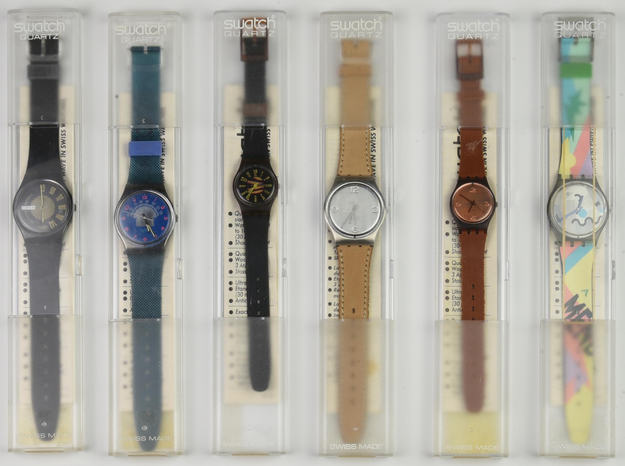 Lotto 25 | LOTTO DI SEI SWATCH, 1990 composto da: -SWATCH RADIO DAYS, mod. BROADCAST,...