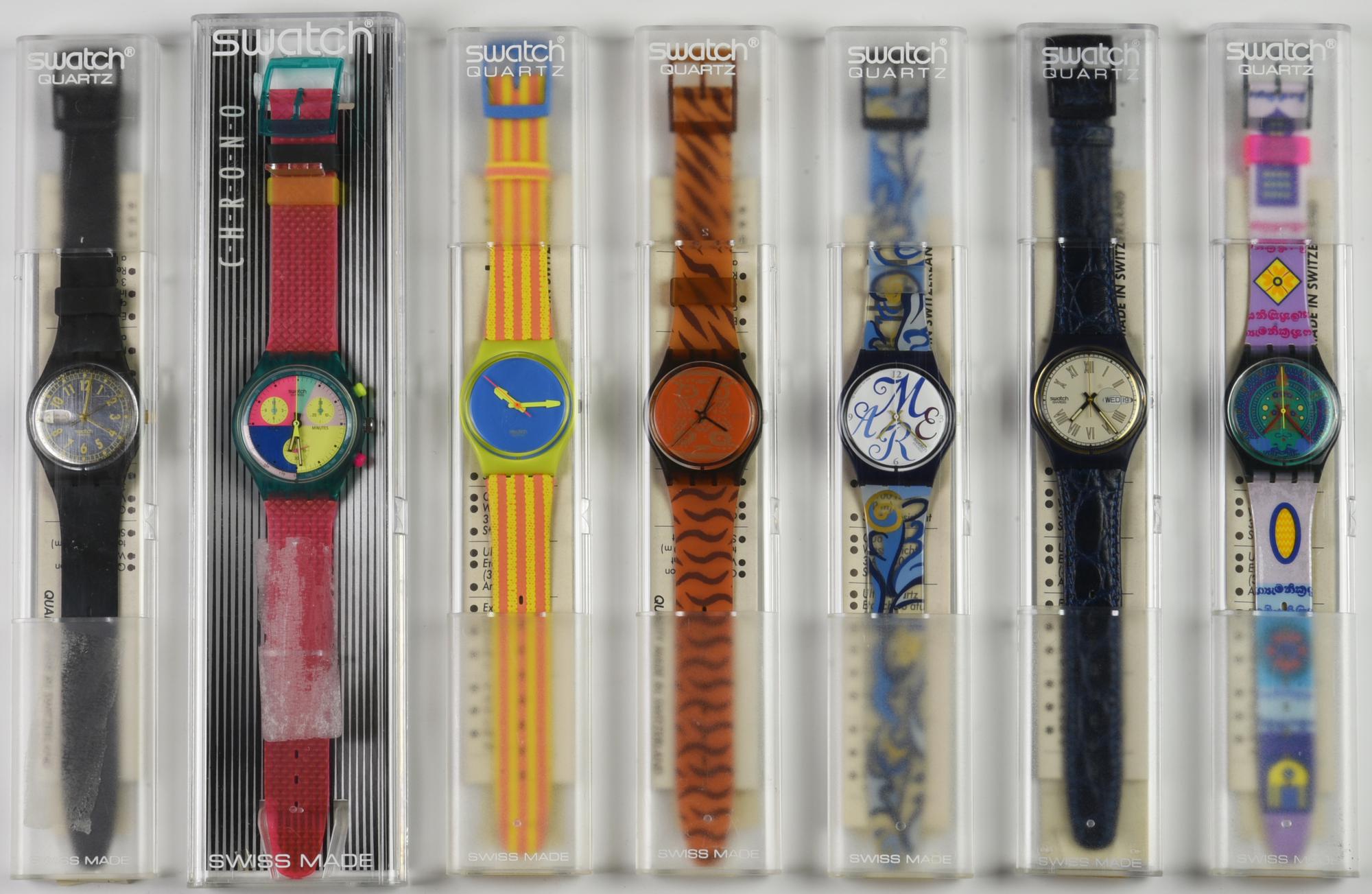 LOTTO DI SETTE SWATCH, 1992-1993 composto da: -SWATCH CHRONO, mod. FLASH...