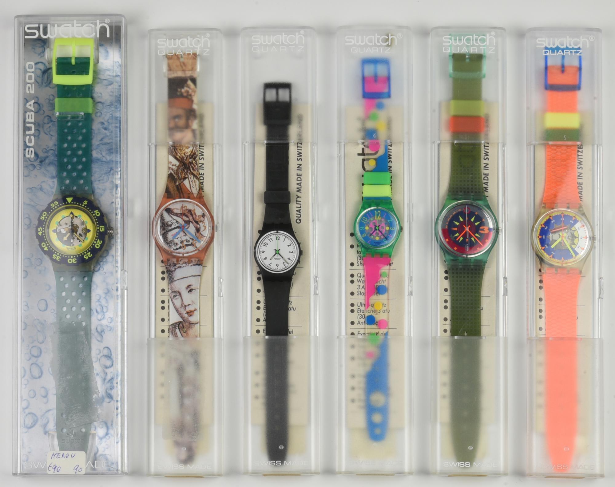 LOTTO DI SEI SWATCH, 1990, 1993 composto da: -SWATCH SCUBA 200, mod. MEROU,...