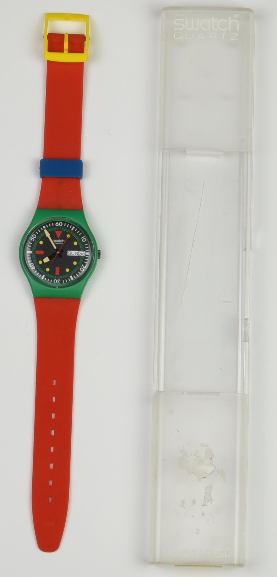 SWATCH DEVIL'S RUN, 1986 mod. EMERALD DIVER, cod. GG703 Completo di scatola...