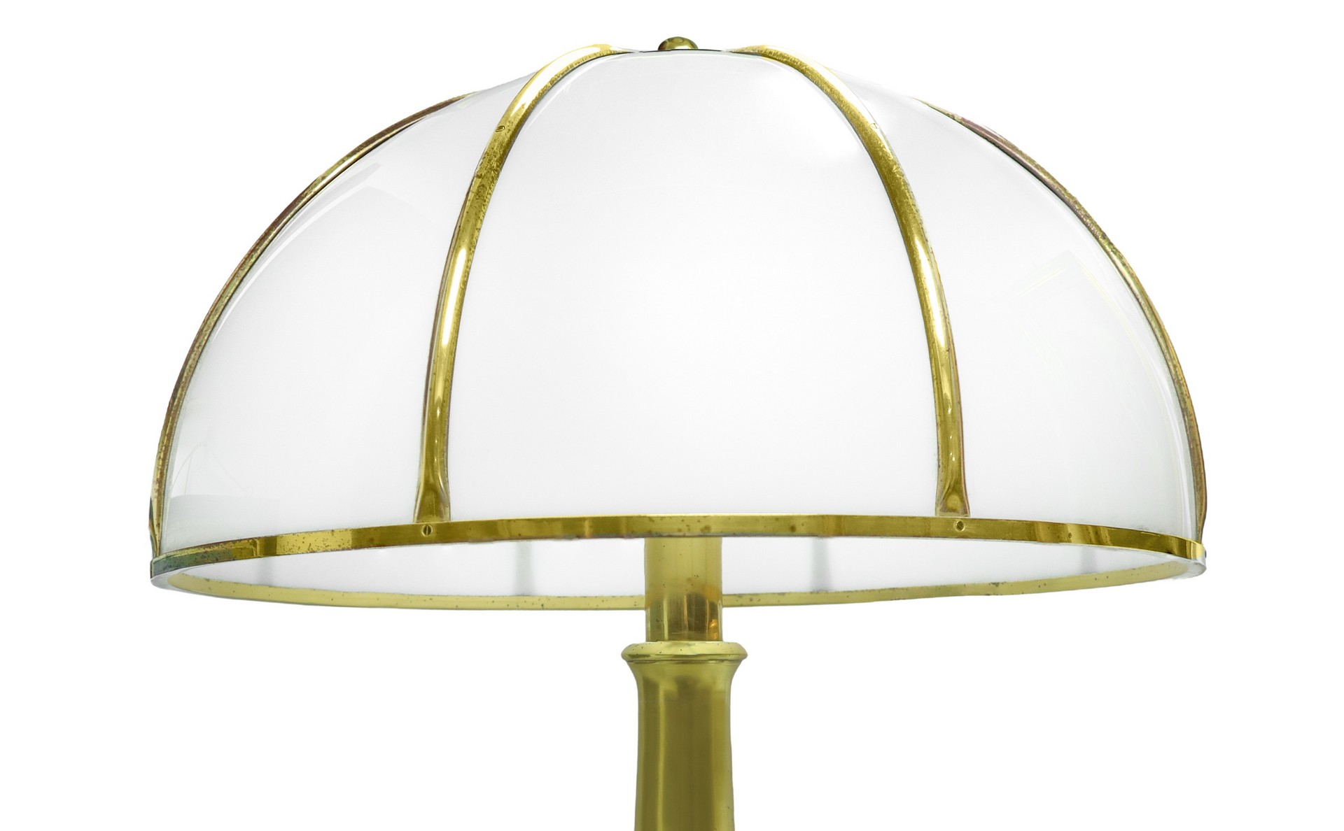 Gabriella Crespi (1922 Saronno-Milano 2017) - Lampada da tavolo mod . Fungo serie Rising Sun’, struttura in ottone dorato e perspex., 70's H cm 85. Segni di ossidazione alla base. Firma sulla base ed incima. Opera inserita nell'Archivio Gabriella Crespi