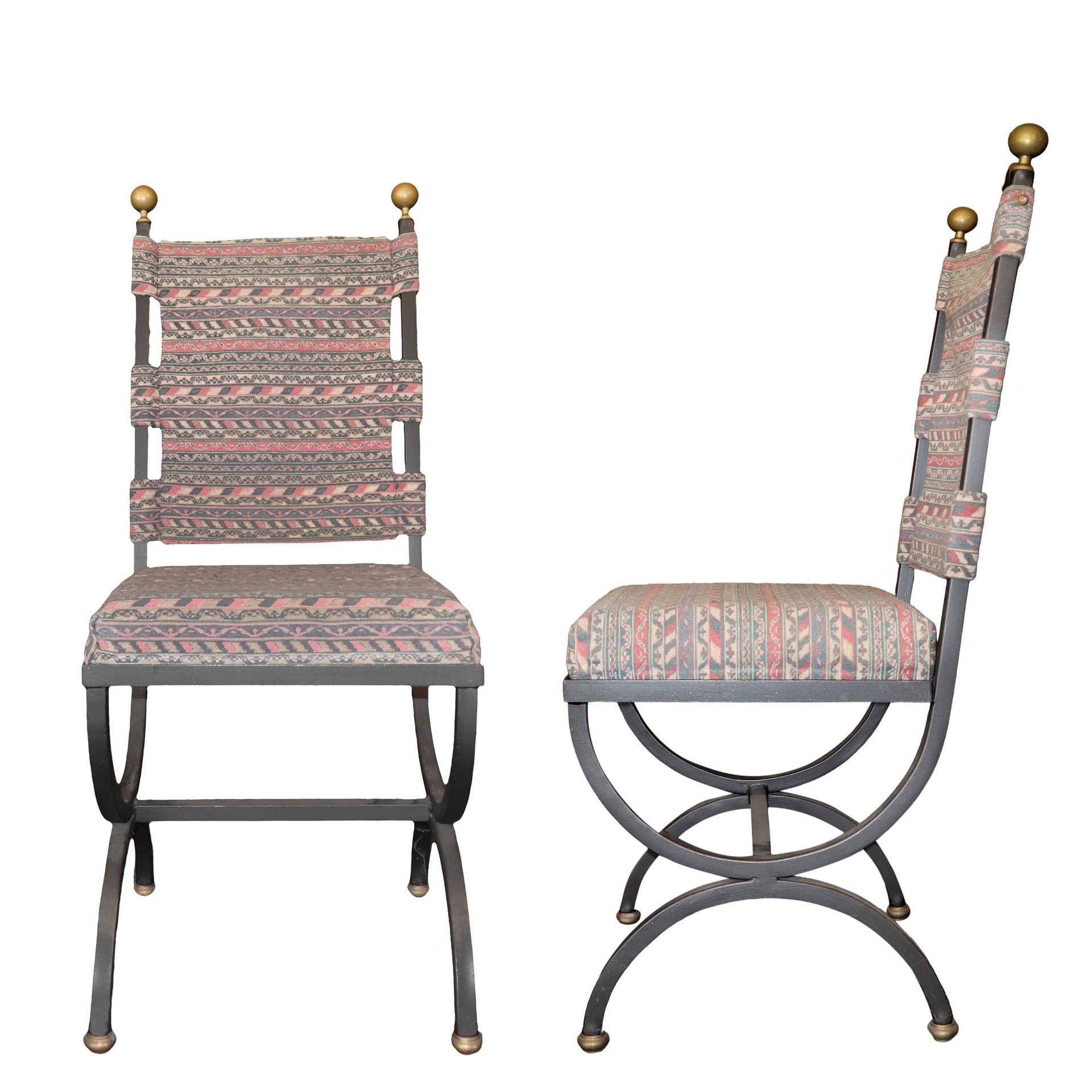 Coppia di sedie in ferro battuto Pomoli dorati alla spalliera
