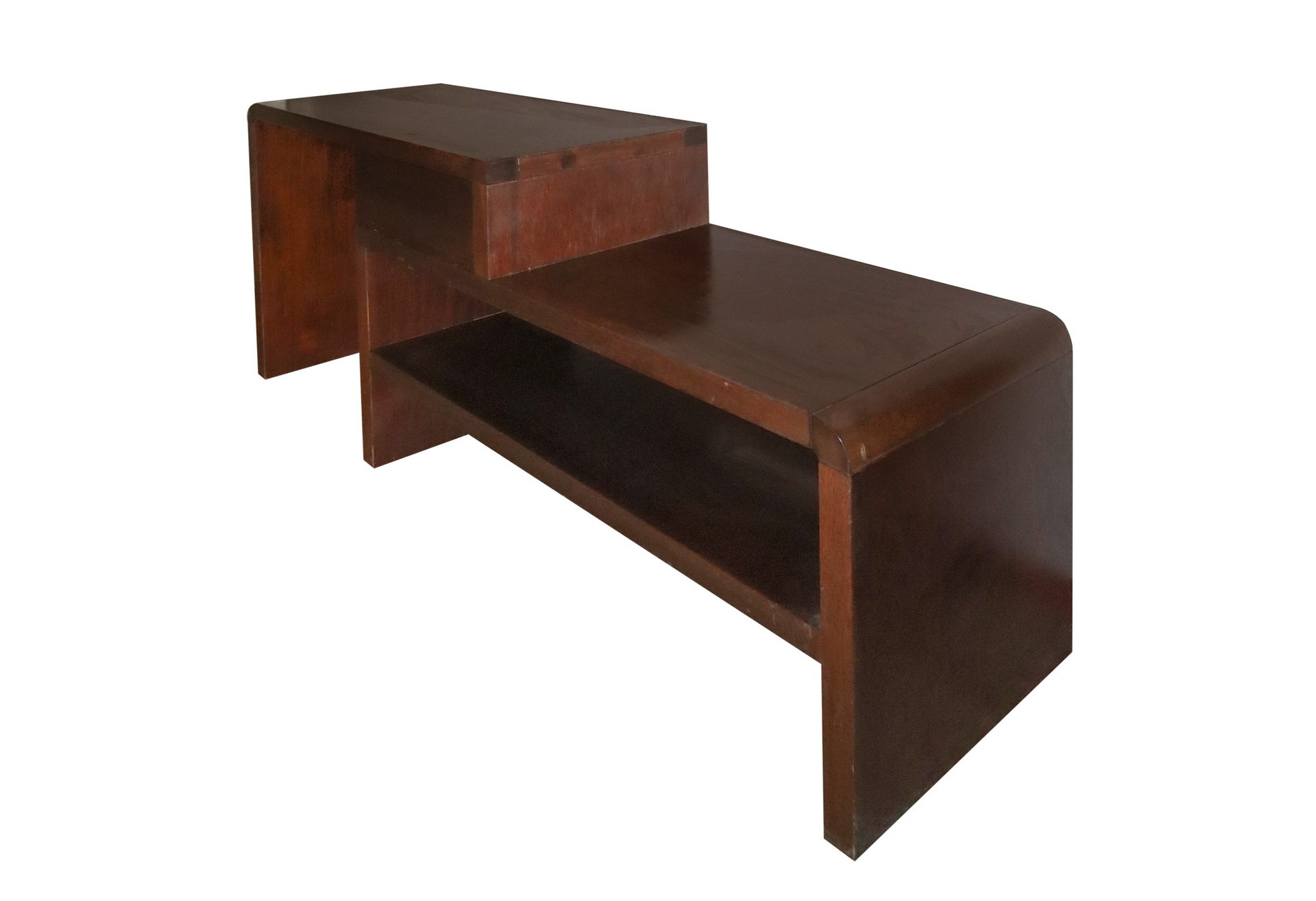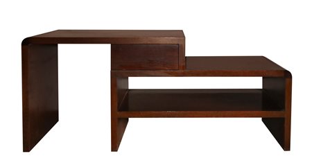 Etagere con struttura modulabile rivestita in mogano h cm 70 x cm 45 Produzione italiana. Con cassetto frontale. Presenti segni di uso.