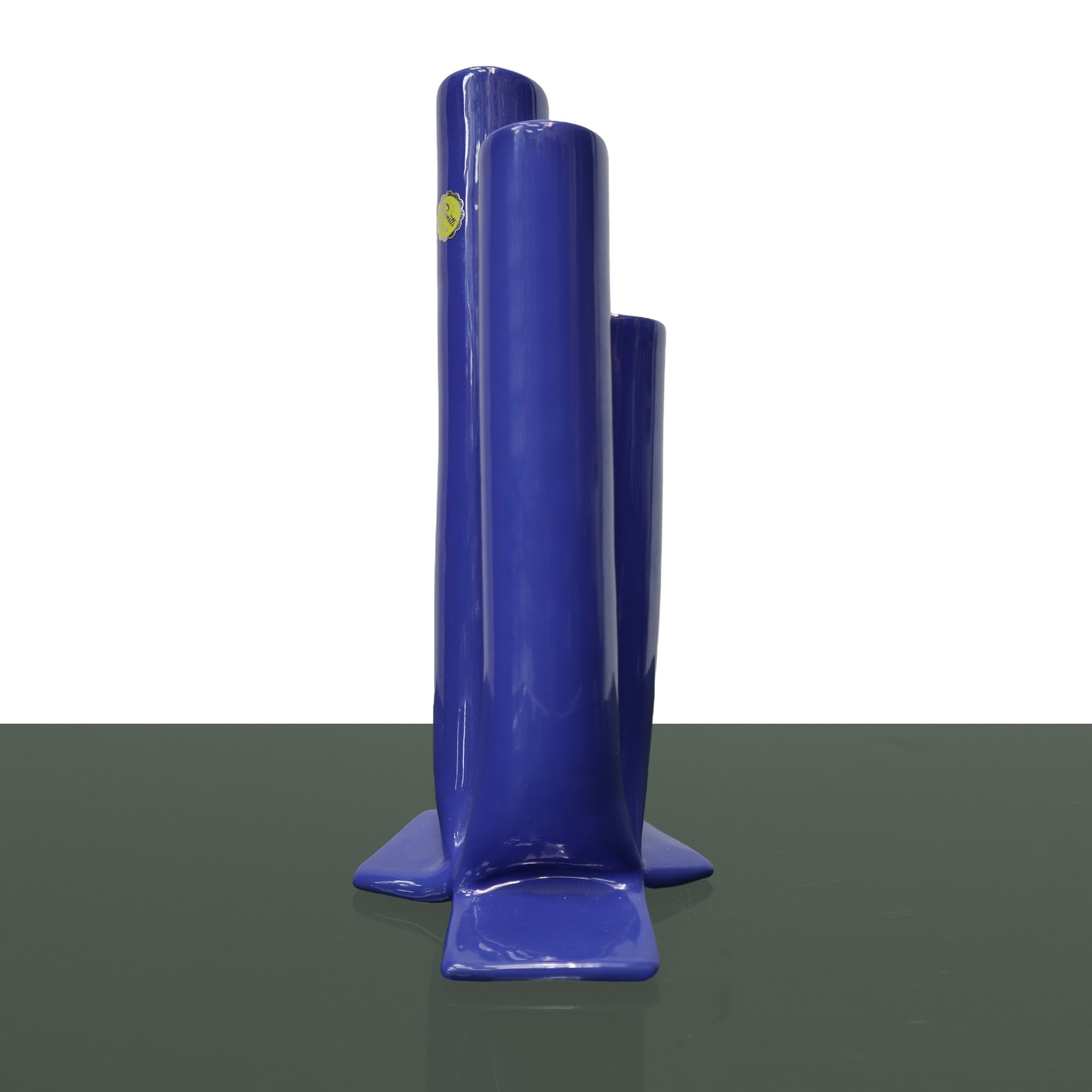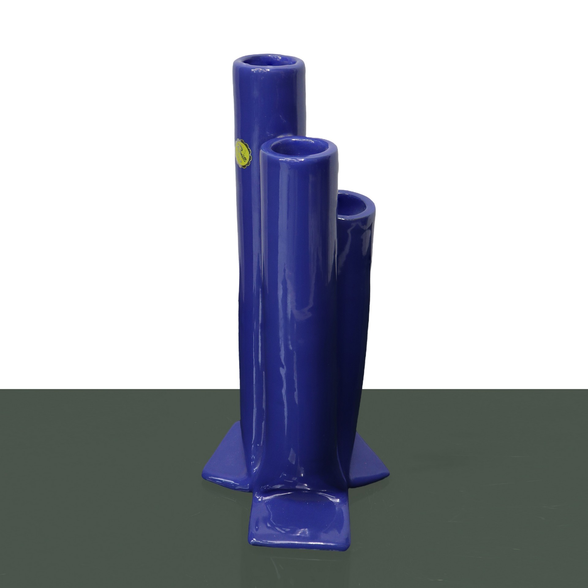 Rometti Italy - Vaso in ceramica smaltato nei toni del blu, con tre monofiore