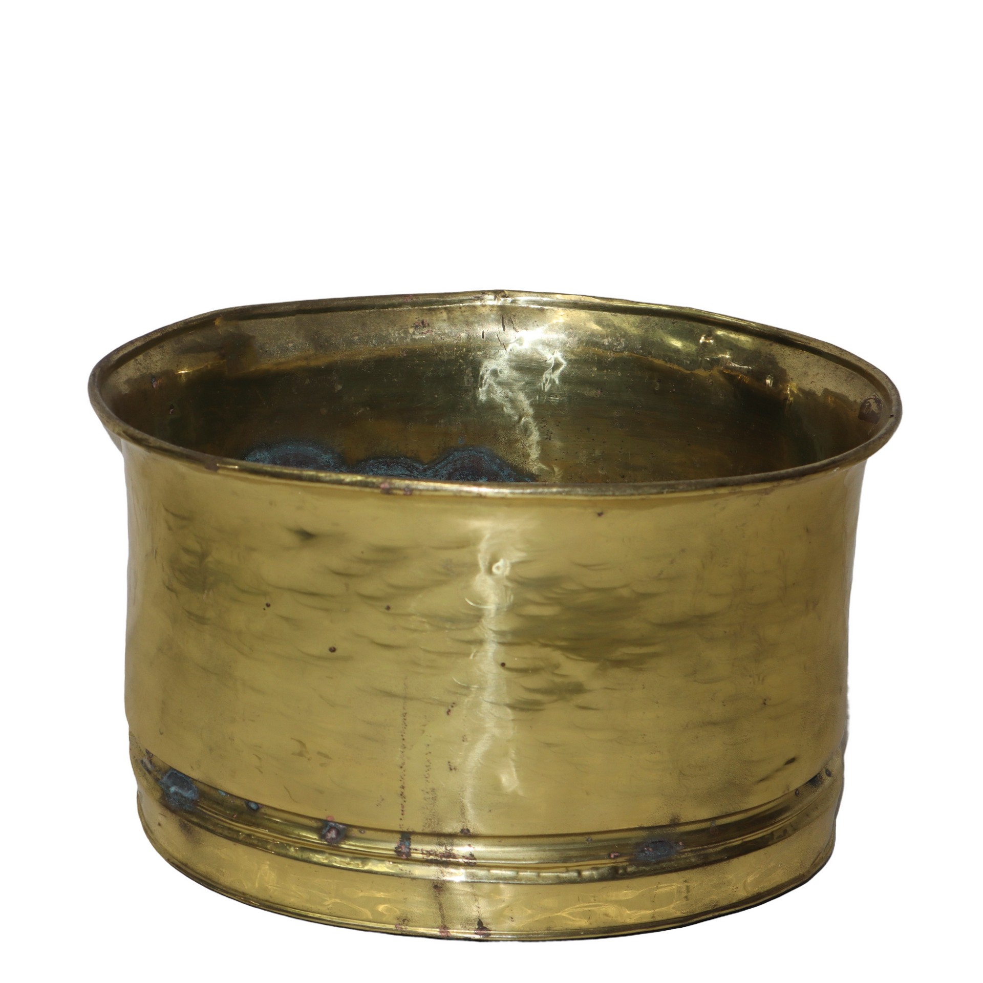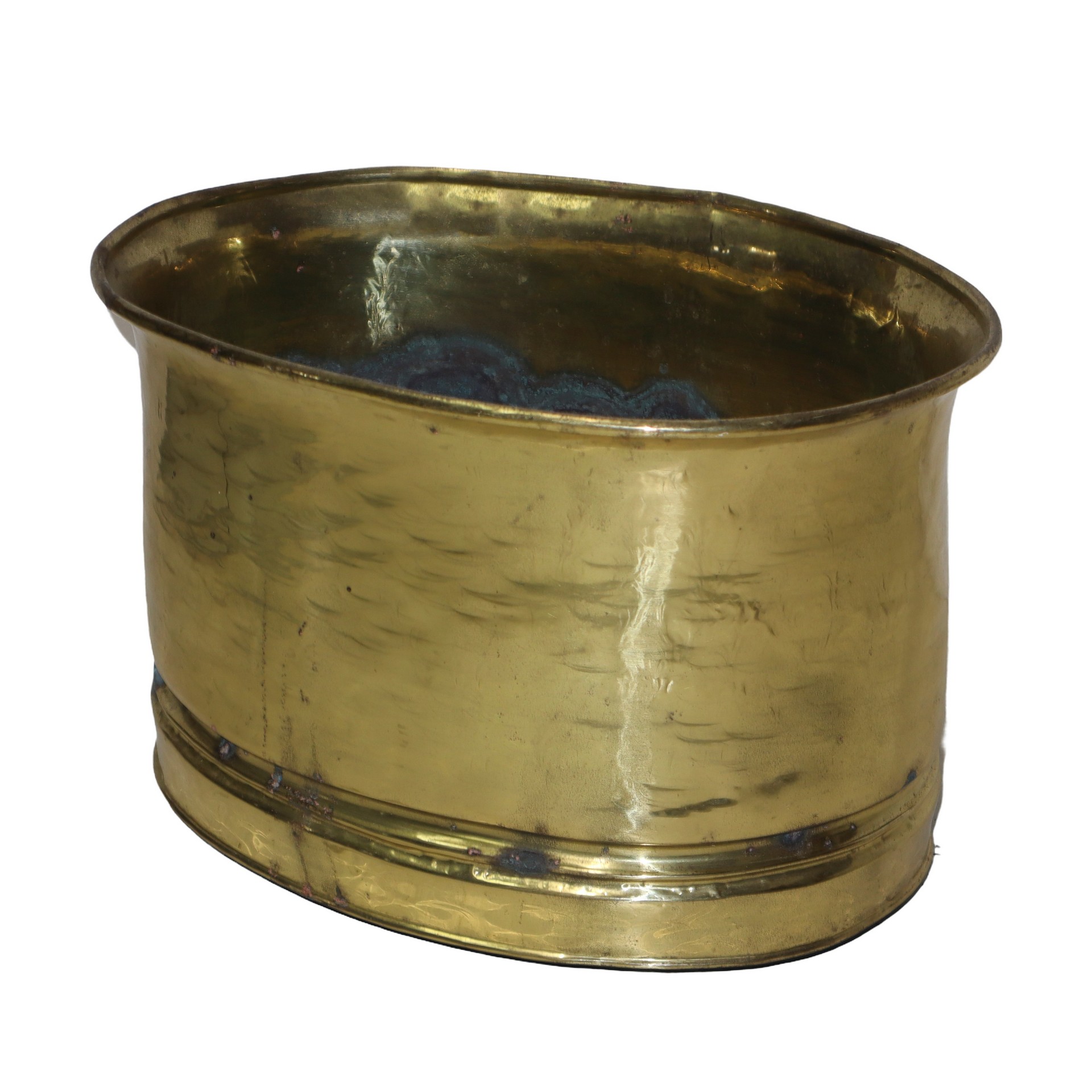 Cachepot ovale in ottone dorato h cm 30, D 46 x 34 Con rotelle alla baseCon rotelle alla base